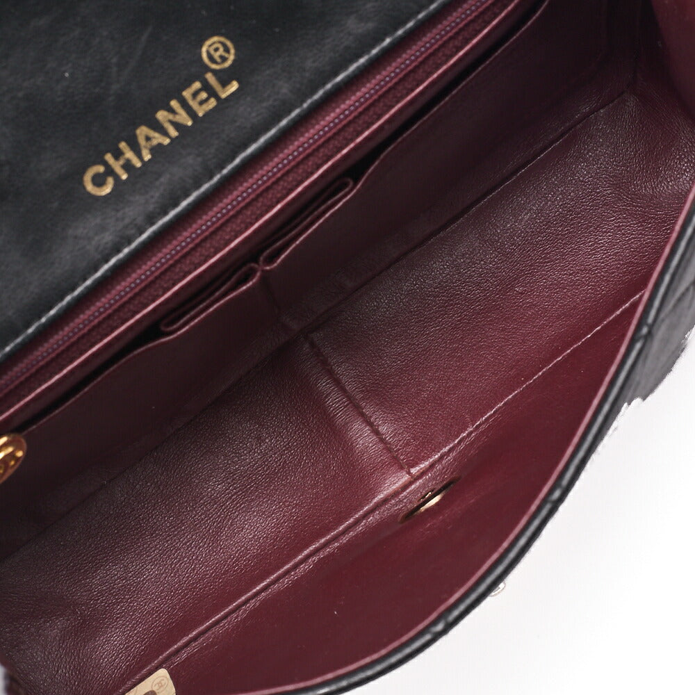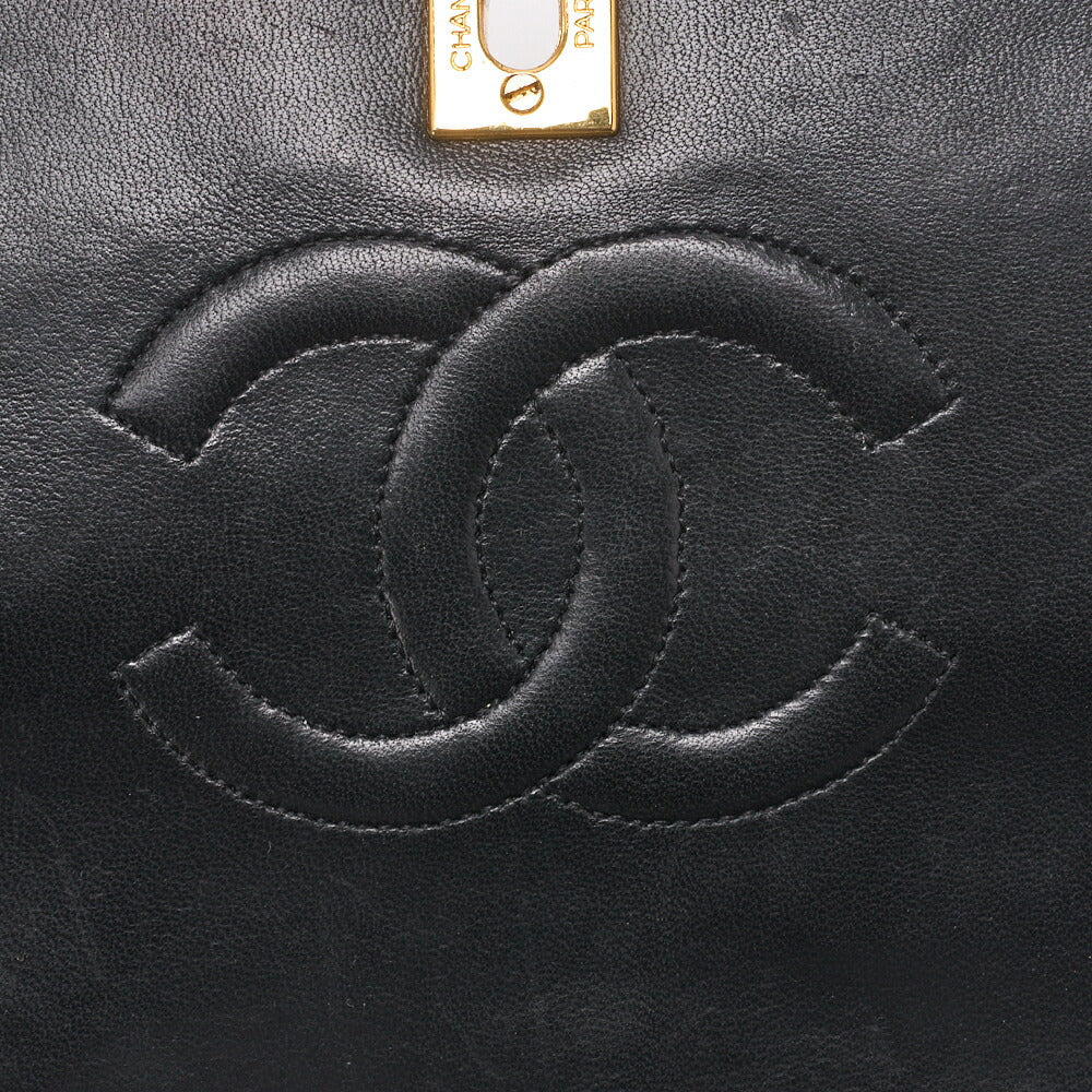 Pre-Owned Shoulder Bag Matelassé Lambskin Black Gold-Tone Hardware, Pre-Owned