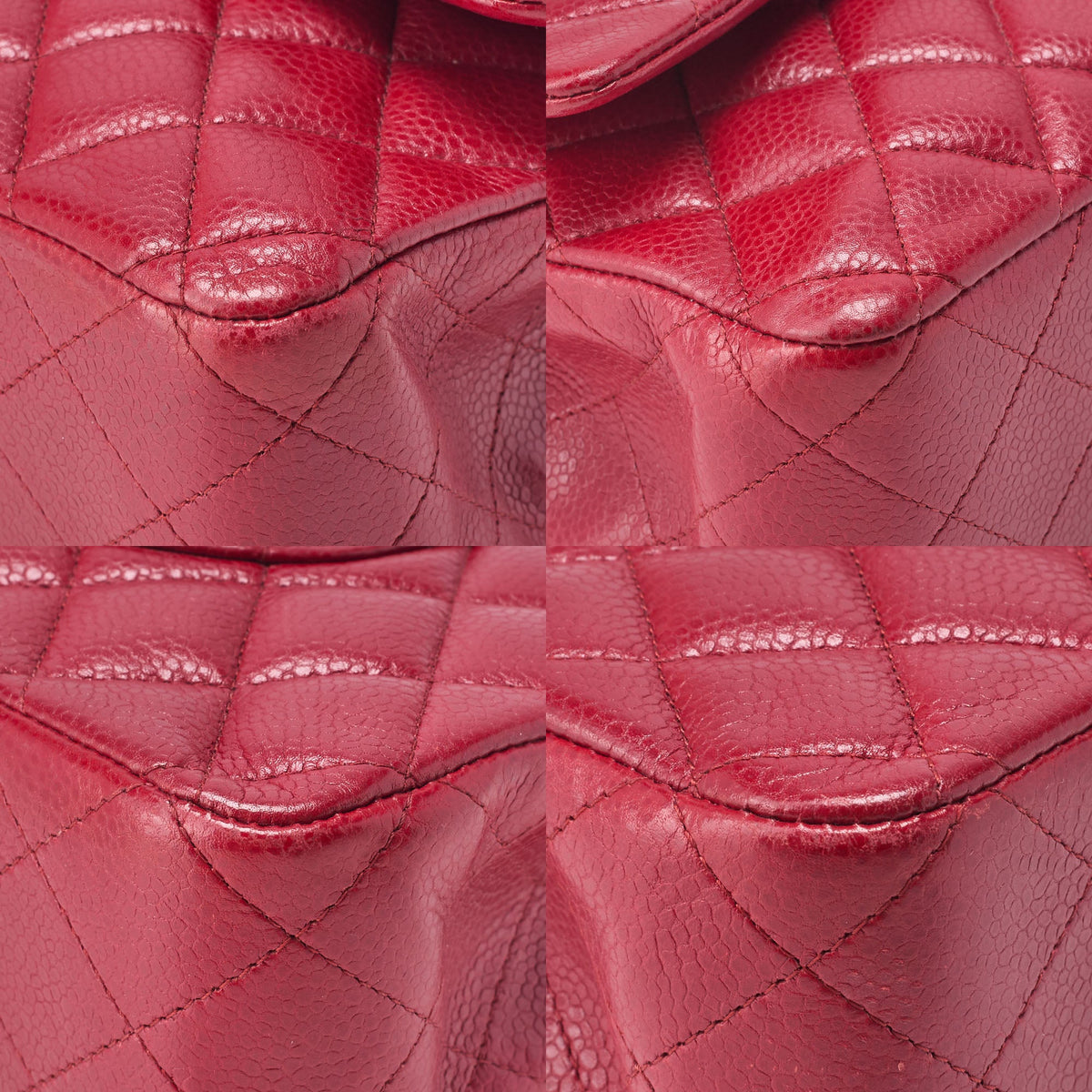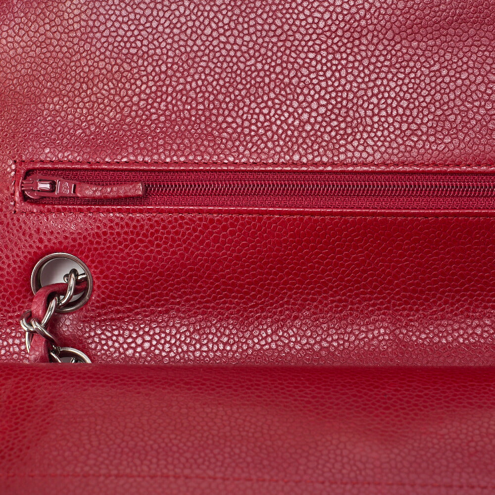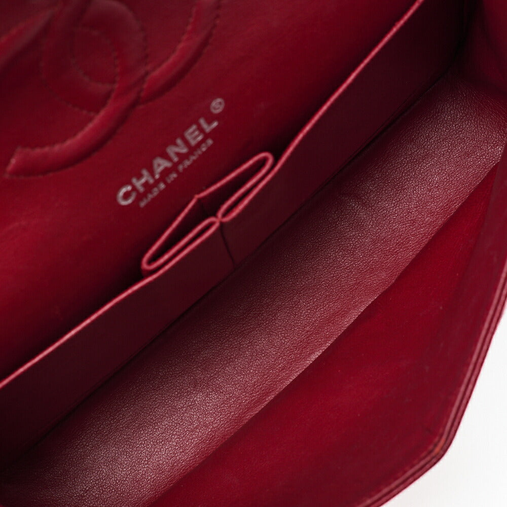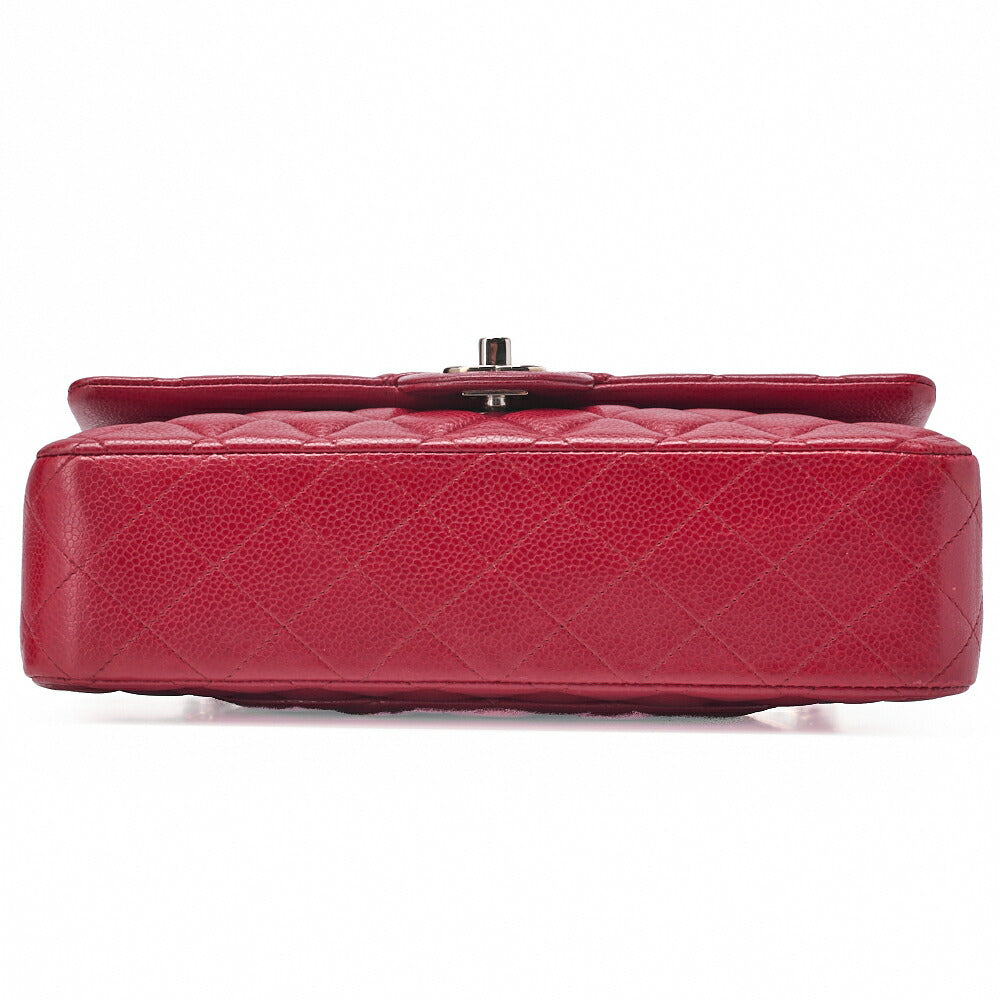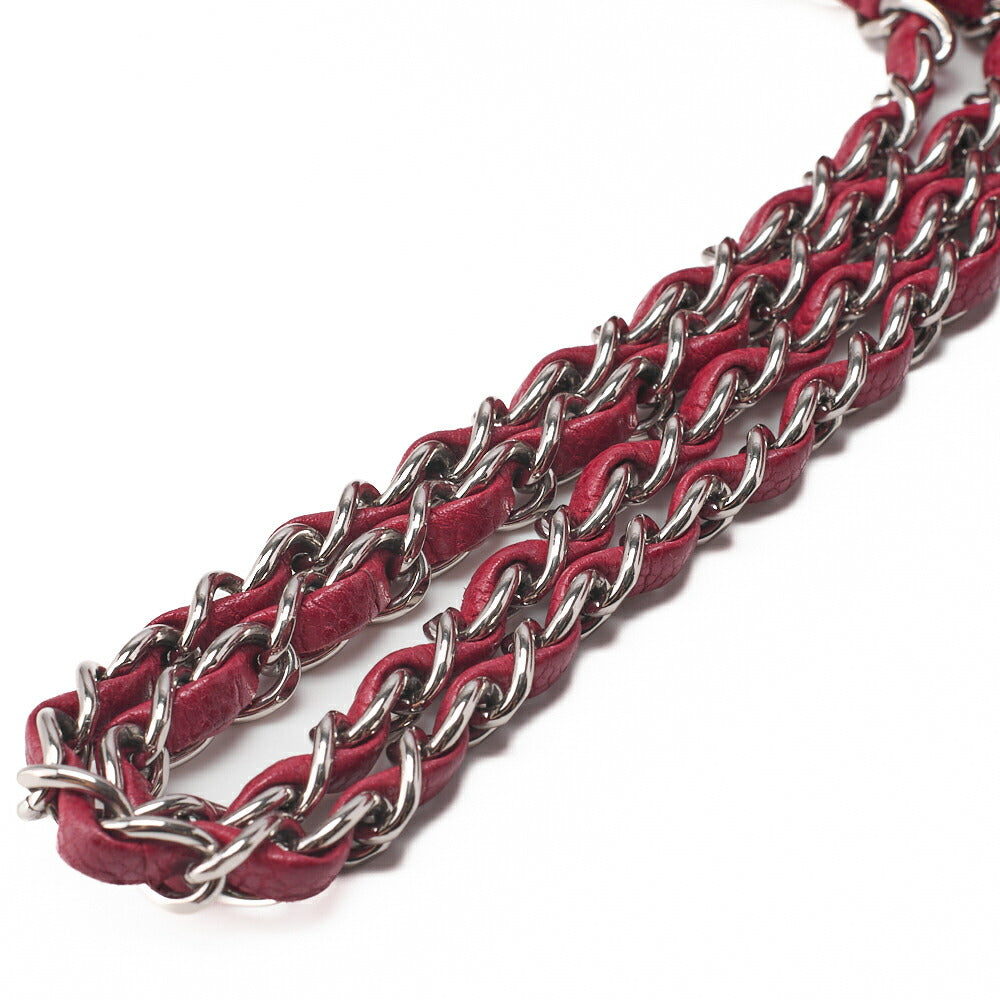 Pre-Owned Shoulder Bag Matelassé Double Flap 25cm Chain Shoulder Caviar Skin Red Silver-Tone Hardware, Pre-Owned