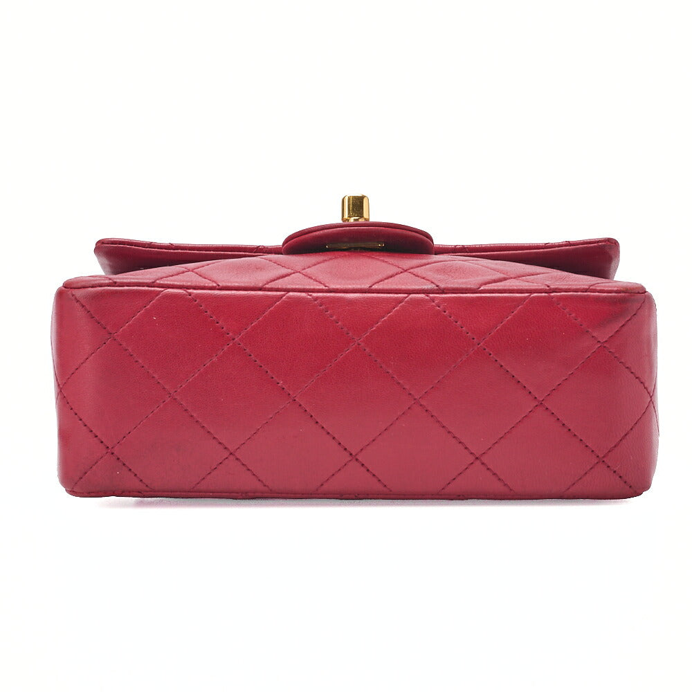 Pre-Owned Schultertasche Mini Matelassé Lammleder Rot Goldfarbene Hardware Pre-Owned