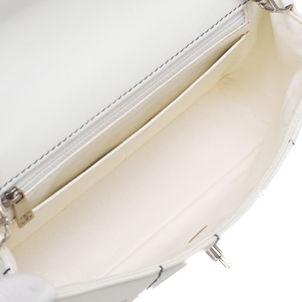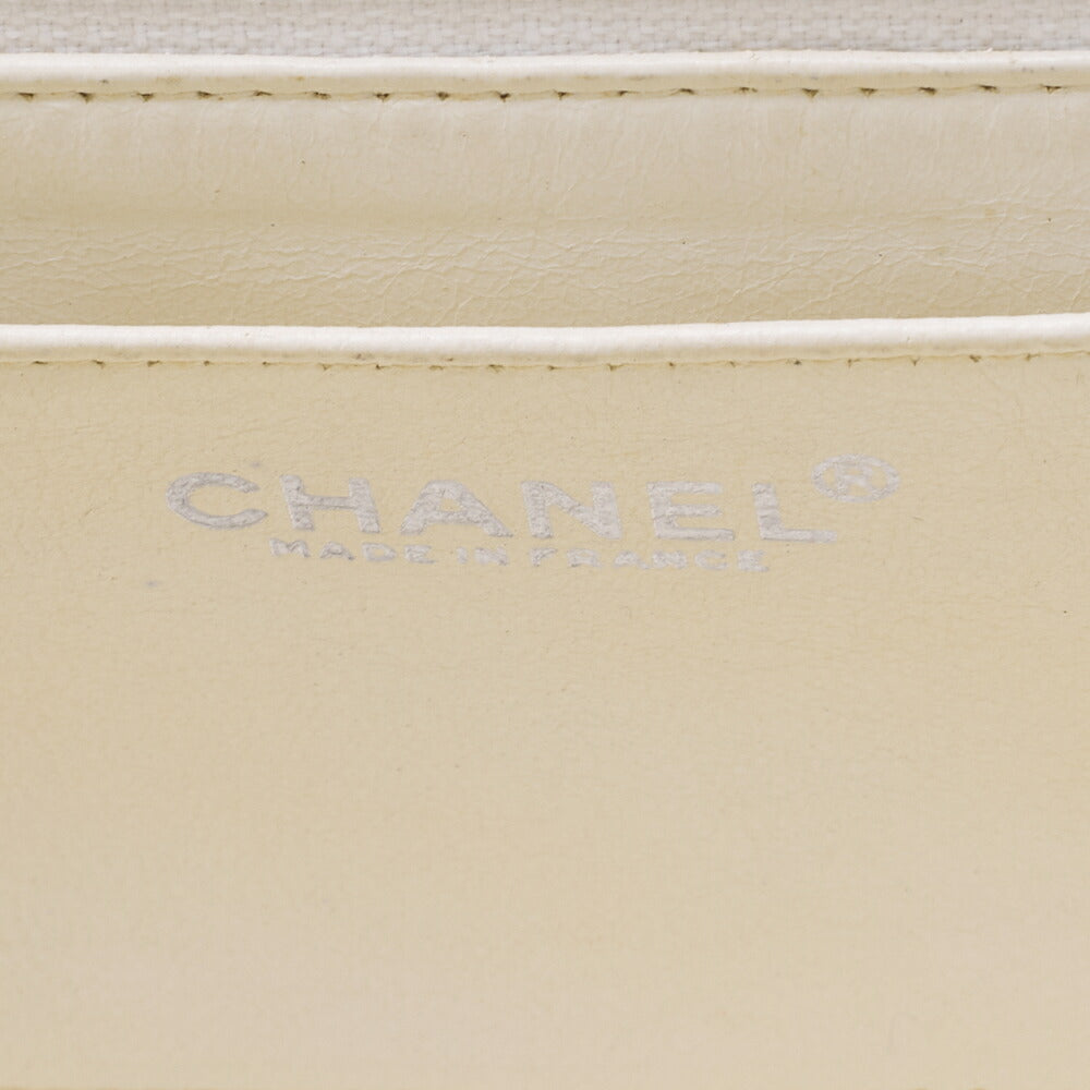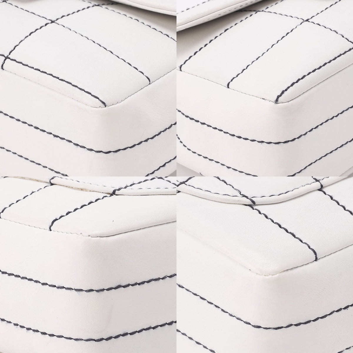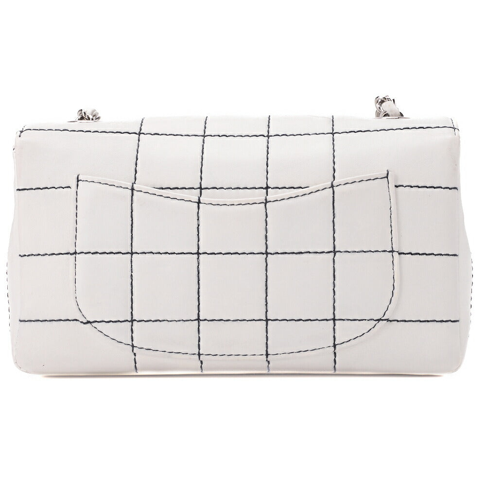 Veredeln Sie Ihren Stil mit der exquisiten CHANEL Chanel Schultertasche mit dem ikonischen Choco Bar Drehverschluss aus luxuriösem Lammleder in atemberaubendem Weiß. Dieses gebrauchte Stück besticht nicht nur durch bemerkenswerte Handwerkskunst, sondern bietet auch zeitlose Eleganz, die jedes Outfit perfekt ergänzt.