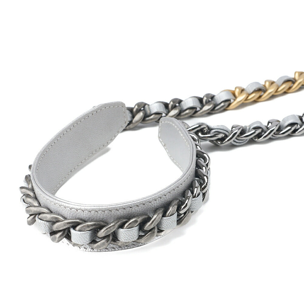 Entdecken Sie den Inbegriff von Luxus mit der CHANEL Schultertasche „Tote Bag Chanel 19 Matelassé Chain“ . Diese atemberaubende Tasche aus exquisitem Lammleder präsentiert sich in einem schicken Silberton mit eleganten goldenen und silbernen Metallbeschlägen und ist damit das perfekte Accessoire für jeden Anlass.