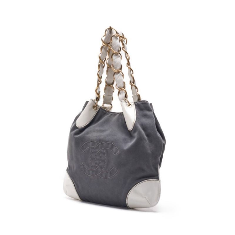 Wir präsentieren die CHANEL Chanel Schultertasche , ein zeitloses Accessoire, das Eleganz und Funktionalität vereint. Diese atemberaubende graue Canvas-Tasche zeigt das ikonische Coco-Logo und ist mit luxuriösen goldenen Metallbeschlägen verziert – ein Must-have für jeden Modebegeisterten.