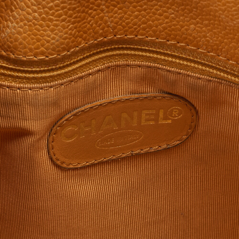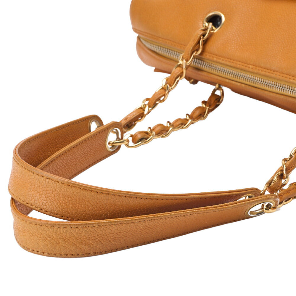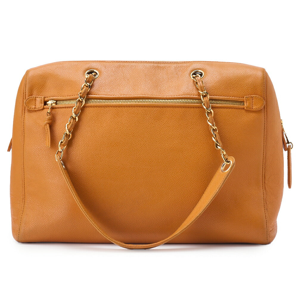 Gebrauchte Umhängetasche Tote Bag Coco Mark Doppelkette Schulter Kaviarhaut Orange Goldfarbene Hardware Gebraucht