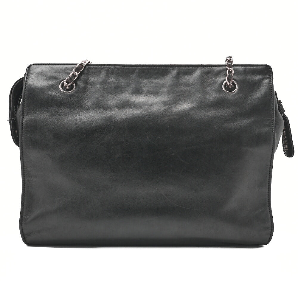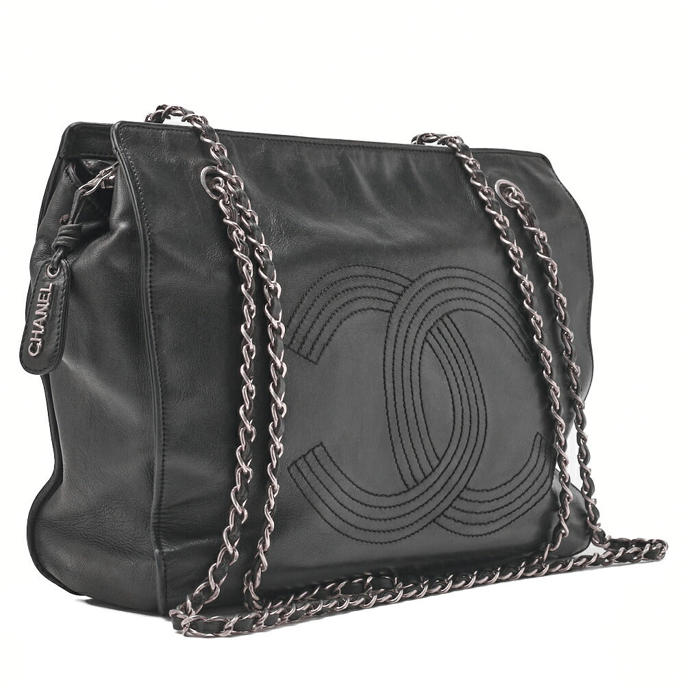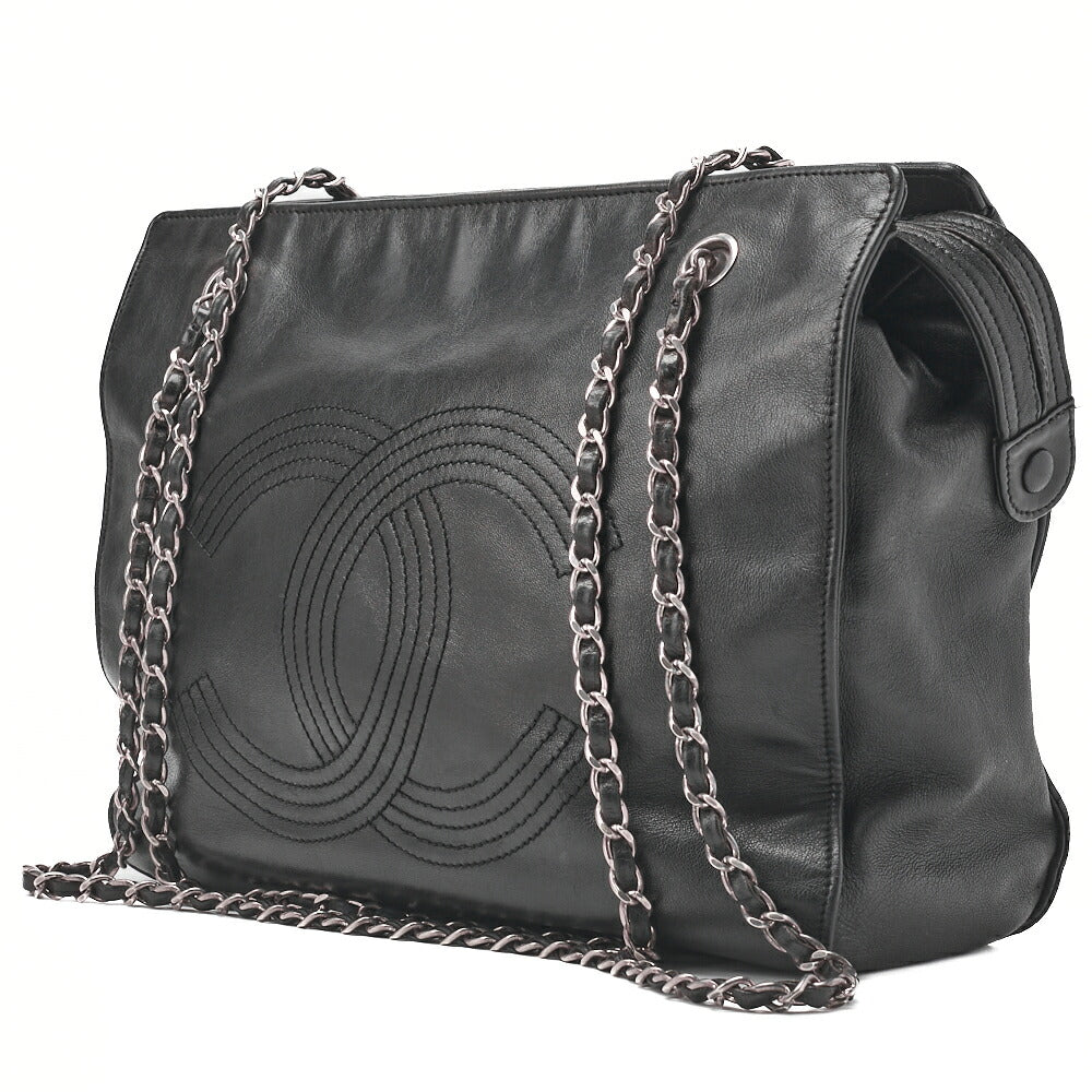 Pre-Owned Schultertasche Coco Mark Doppelkette Schulter Lammleder Schwarz Goldfarbene Hardware Pre-Owned