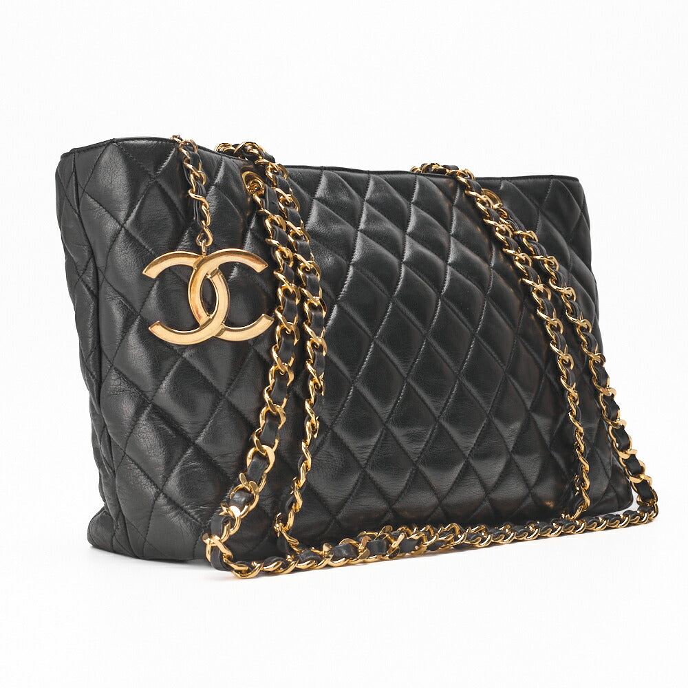 Erleben Sie Luxus und Eleganz mit der CHANEL Schultertasche Tote Bag Lammfell Matelassé Coco Charm Schwarz (Goldbeschläge) . Diese ikonische Tragetasche aus exquisitem Lammfell ist nicht nur ein modisches Statement – sie ist ein vielseitiger Begleiter für die moderne Frau.