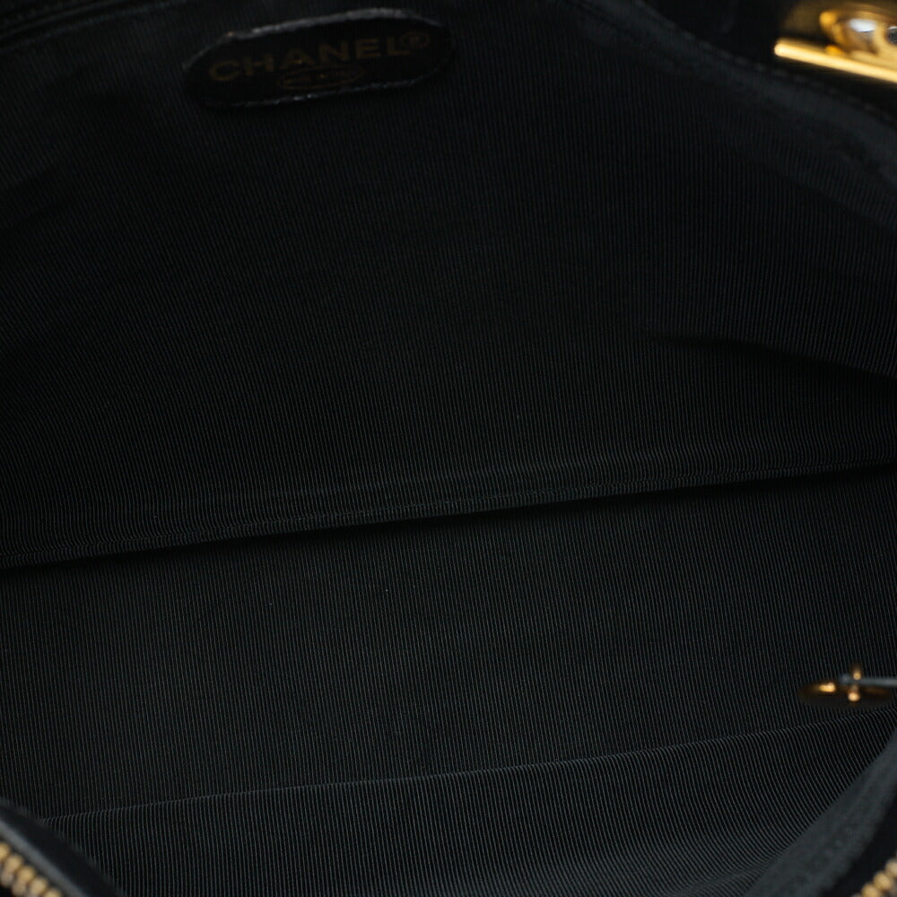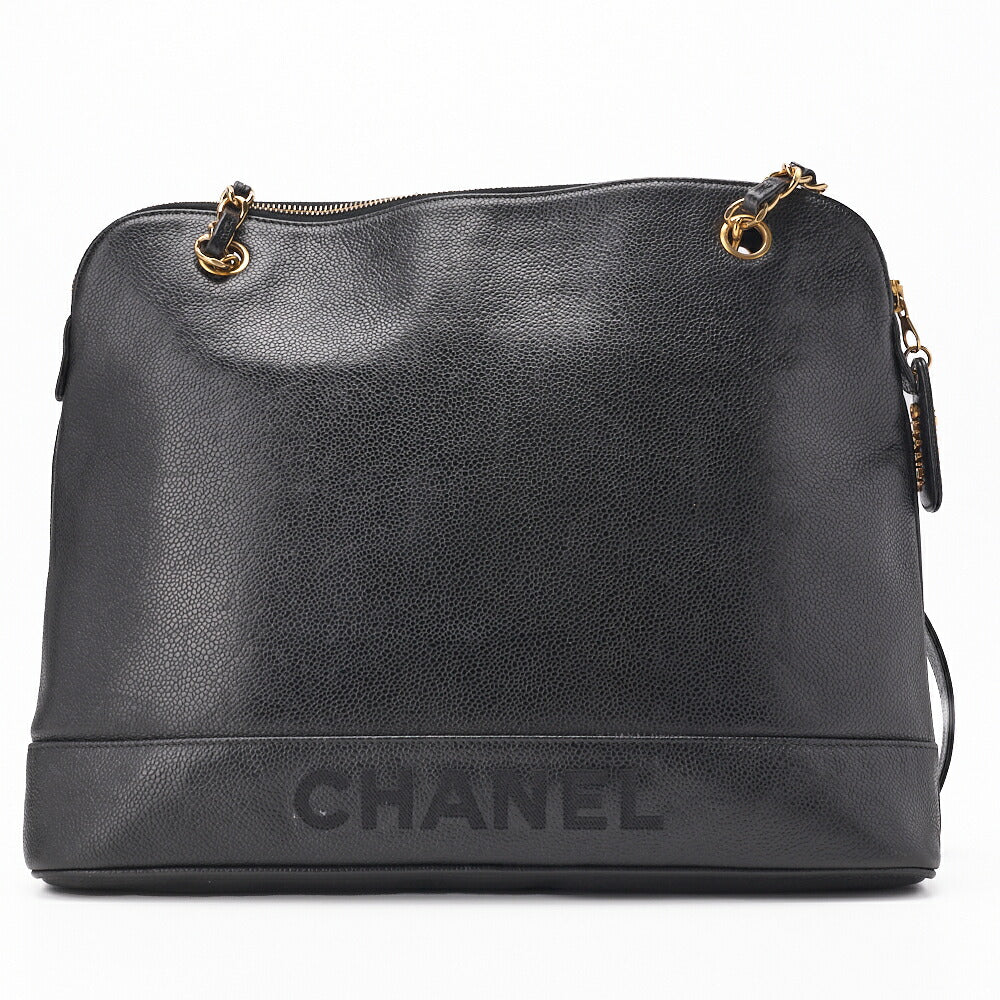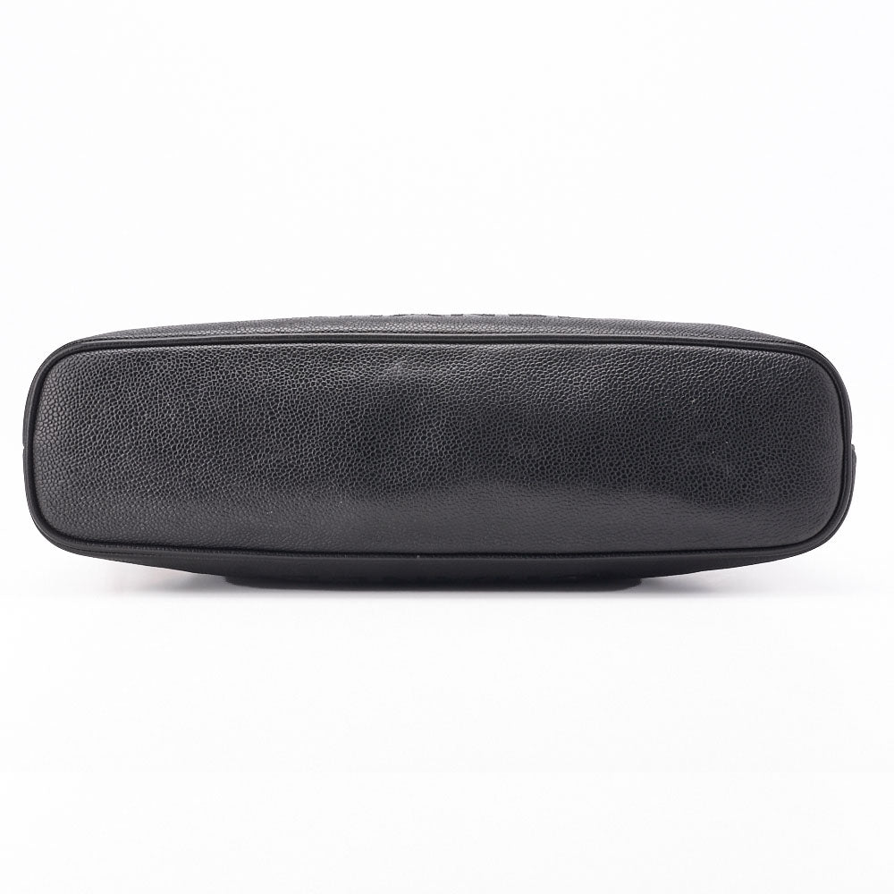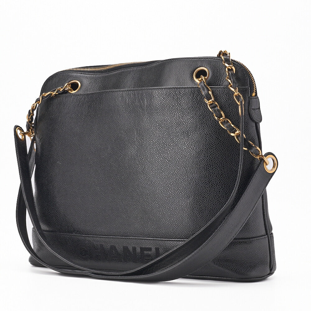 Pre-Owned Schultertasche Doppelkette Schulter Kaviarhaut Schwarz Goldfarbene Hardware Pre-Owned