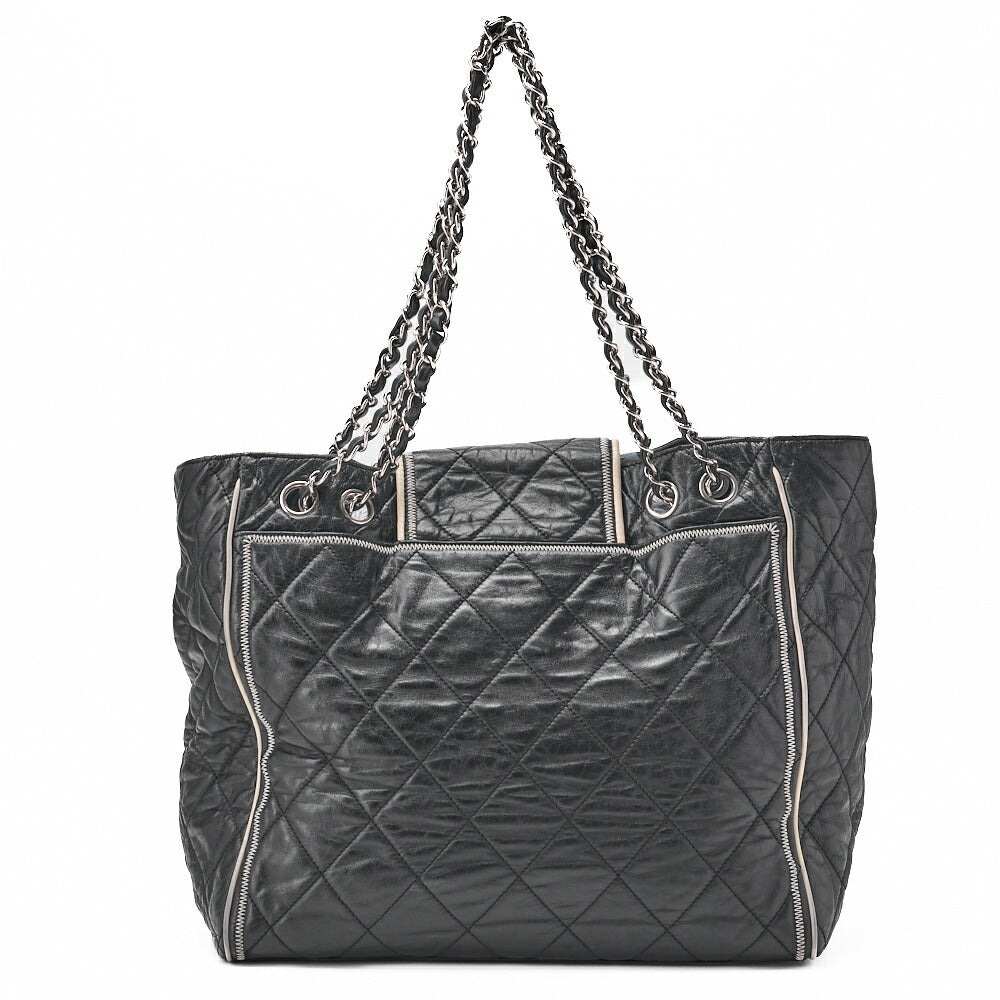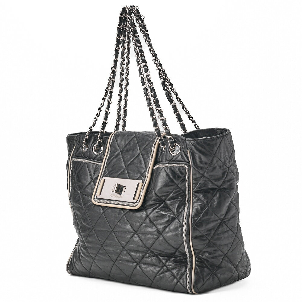 Pre-Owned Schultertasche Tote Bag Matelassé 2.55 Schlosskette Lammleder Schwarz Silberfarbene Hardware Pre-Owned