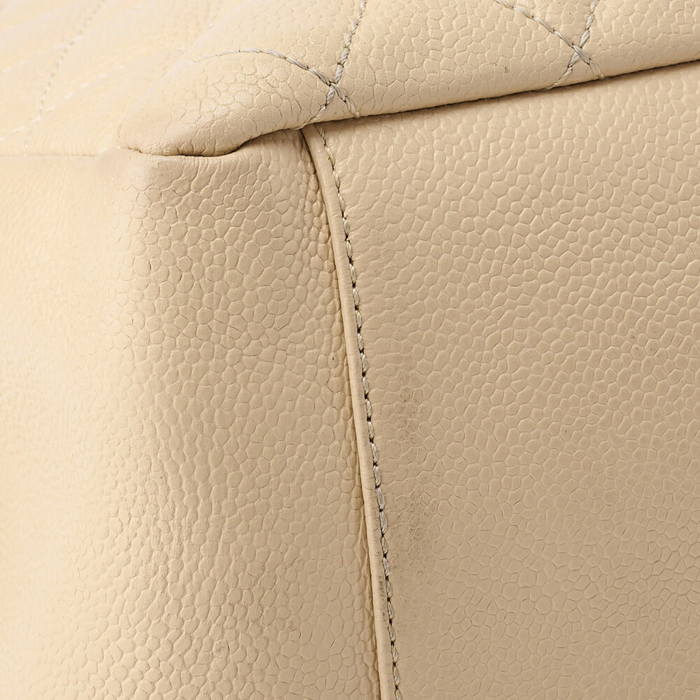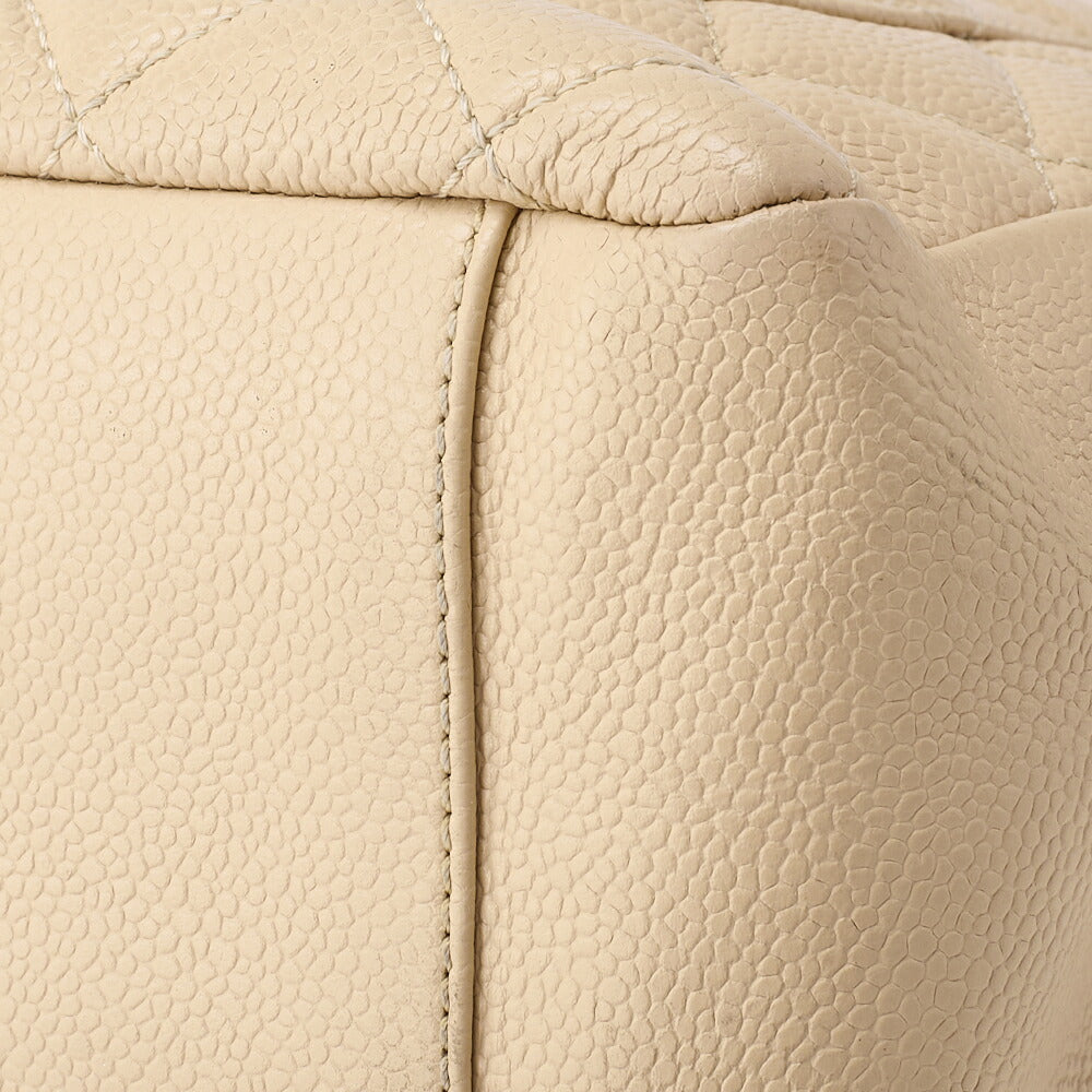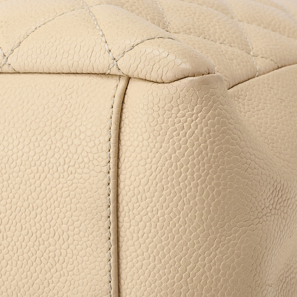 Veredeln Sie Ihren Stil mit der CHANEL Schultertasche „Tote Bag Matelassé Caviar Skin“ in einem atemberaubenden Beigeton. Gefertigt aus luxuriösem Kaviarleder verkörpert diese ikonische Tasche perfekt Eleganz und Langlebigkeit und ist damit ein Must-have für jeden Modebegeisterten.