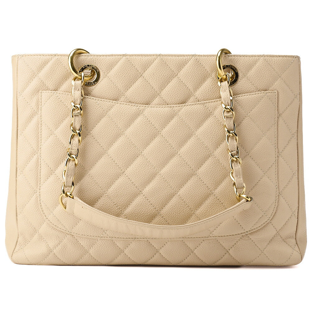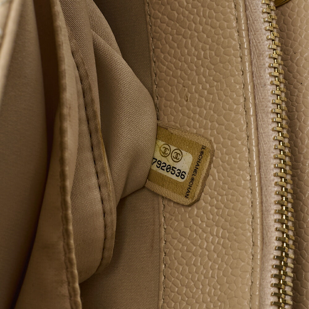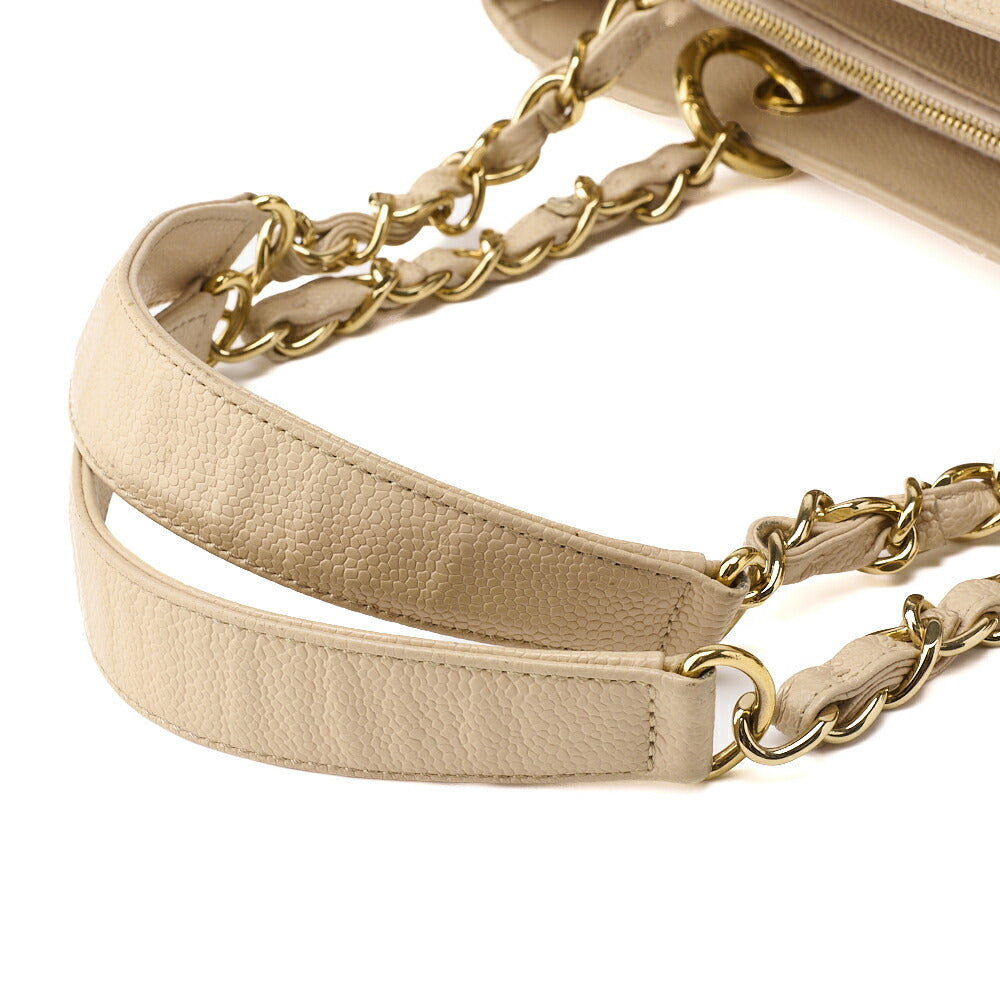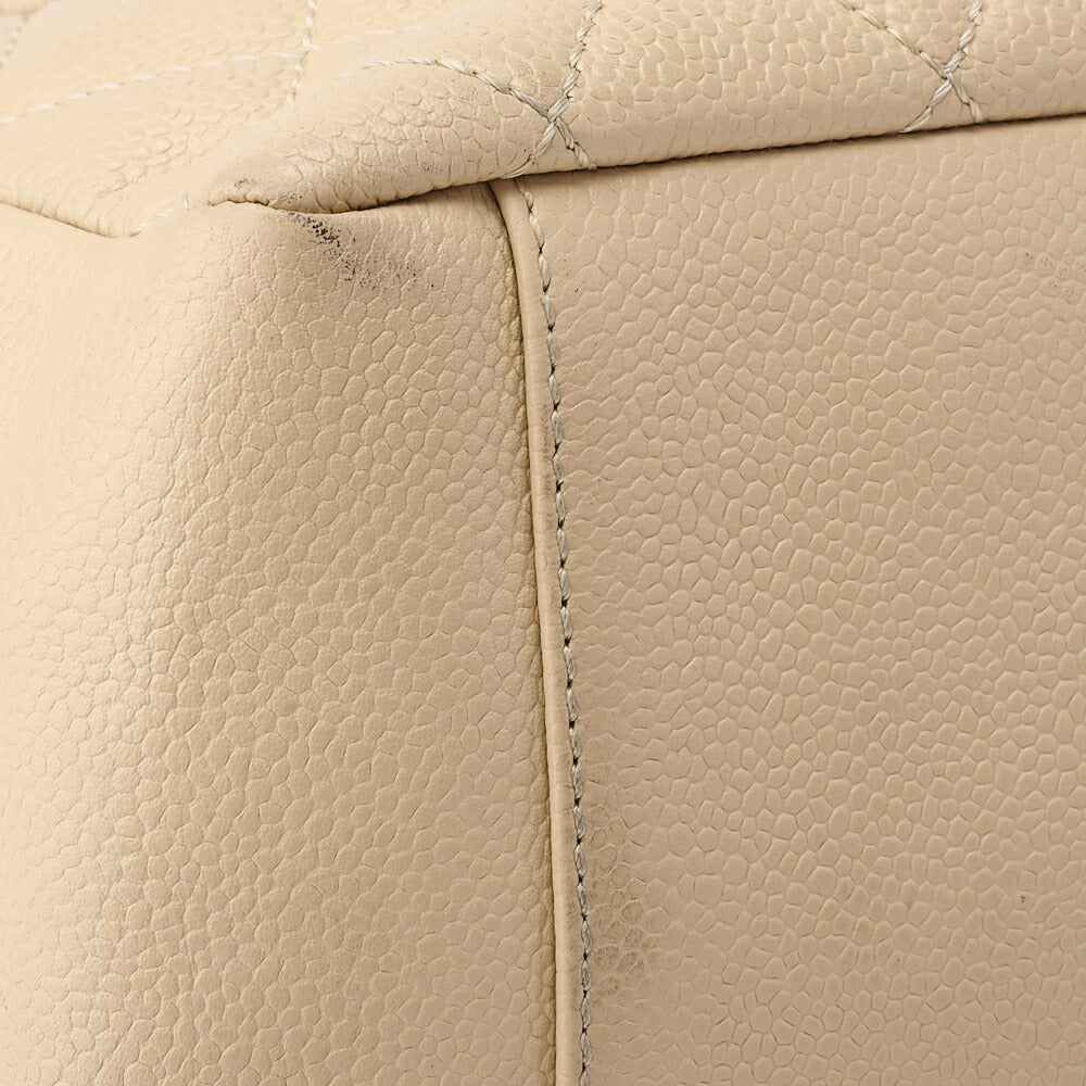 Veredeln Sie Ihren Stil mit der CHANEL Schultertasche „Tote Bag Matelassé Caviar Skin“ in einem atemberaubenden Beigeton. Gefertigt aus luxuriösem Kaviarleder verkörpert diese ikonische Tasche perfekt Eleganz und Langlebigkeit und ist damit ein Must-have für jeden Modebegeisterten.