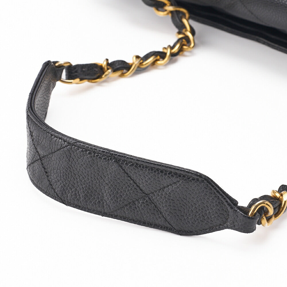 Pre-Owned Schultertasche Matelassé Kaviar Haut Schwarz Goldfarbene Hardware Pre-Owned