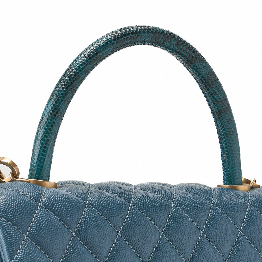 Erweitern Sie Ihre Accessoire-Auswahl mit der CHANEL Schultertasche mit Matelassé-Coco-Griff und 2WAY-Handtasche – einer atemberaubenden Kombination aus Luxus und Funktionalität. Gefertigt aus exquisitem Kaviarleder und verziert mit eleganten Eidechsen -Akzenten ist diese Tasche in Marineblau und Bordeaux das perfekte Statement-Piece für jede anspruchsvolle Frau.