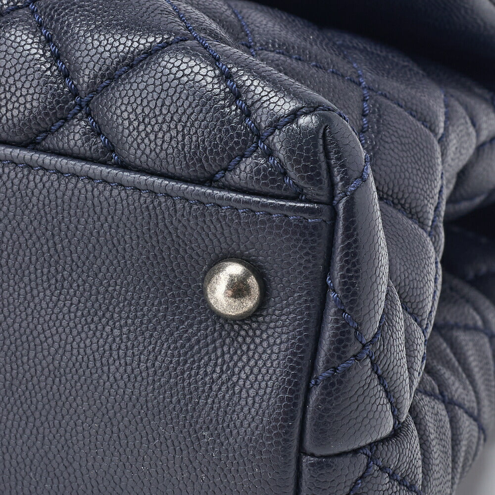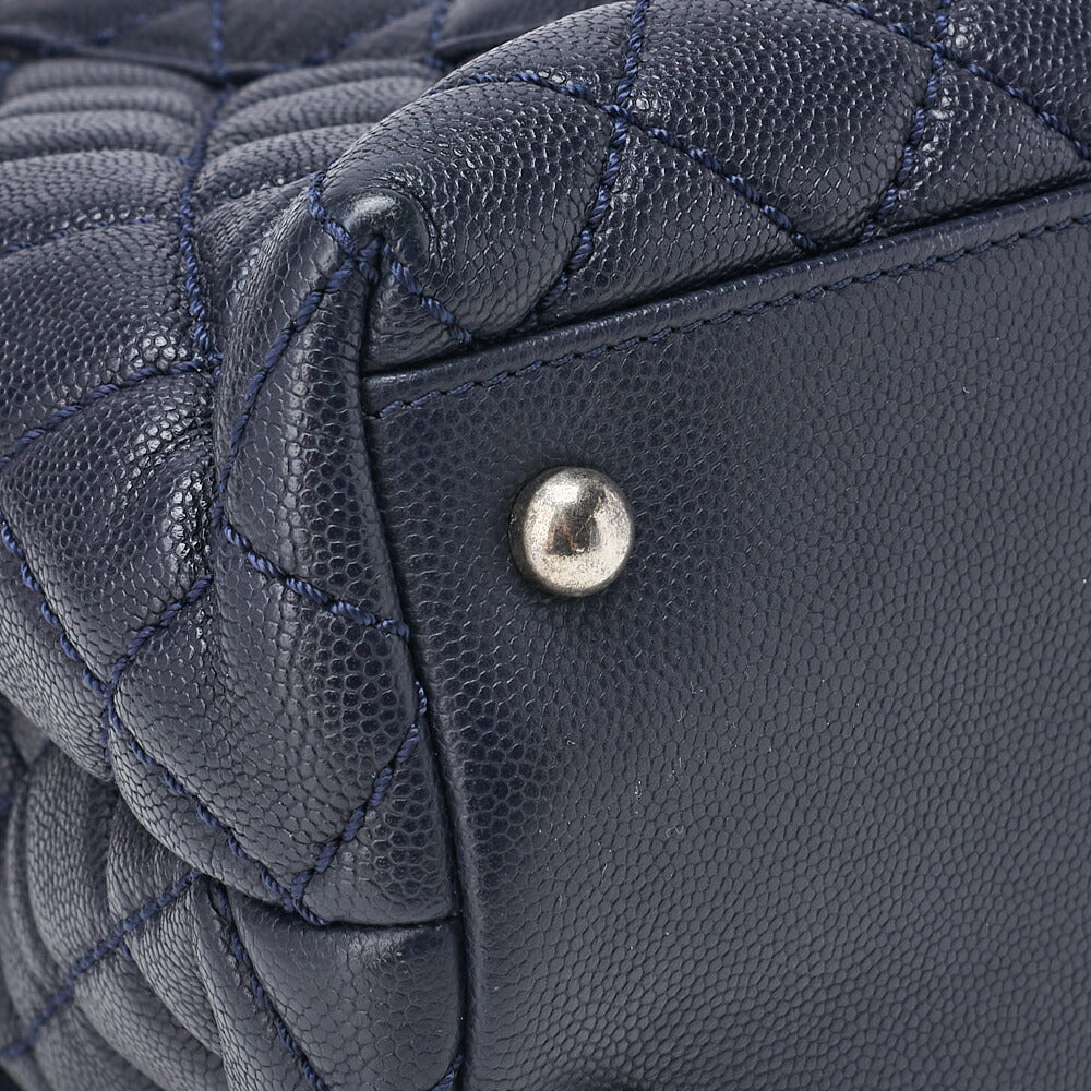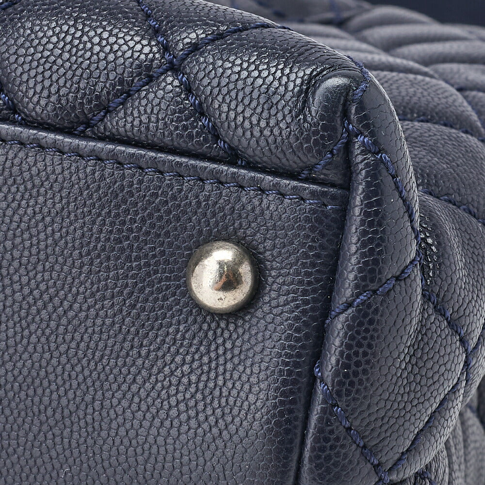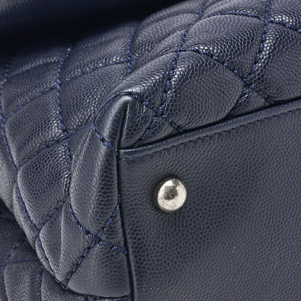 Gebrauchte Schultertasche Matelasse Coco Handle 2WAY Caviar Skin Navy Silberfarbene Hardware Gebraucht