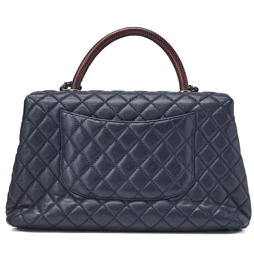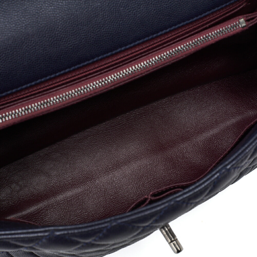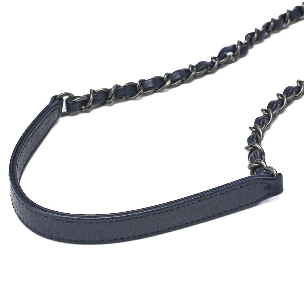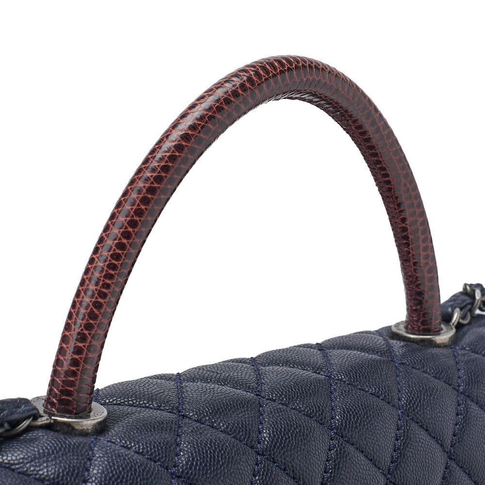 Gebrauchte Schultertasche Matelasse Coco Handle 2WAY Caviar Skin Navy Silberfarbene Hardware Gebraucht