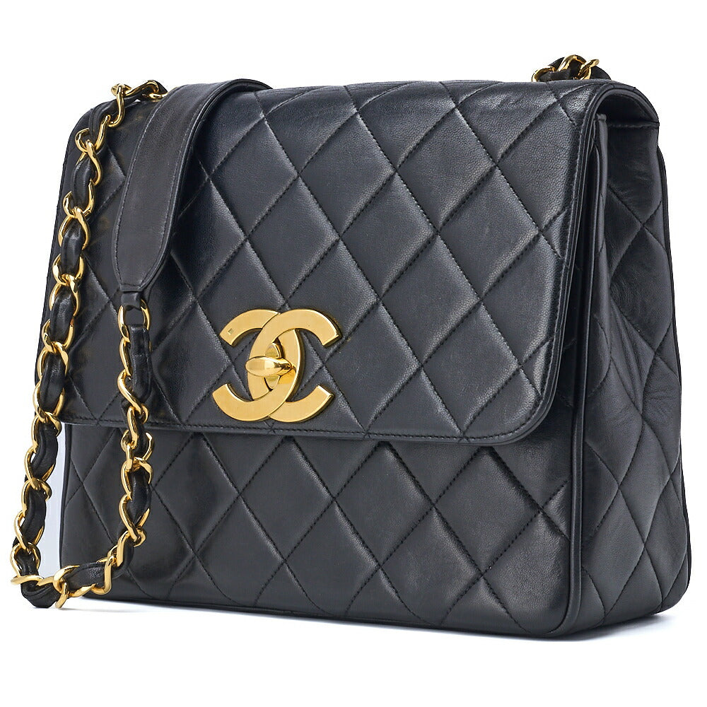 Pre-Owned Schultertasche Matelassé Lammleder Schwarz Goldfarbene Hardware Pre-Owned