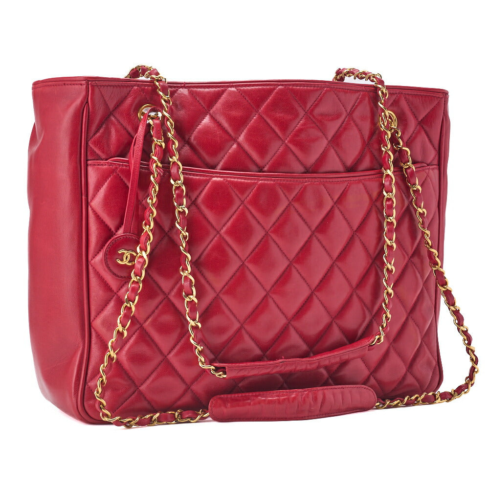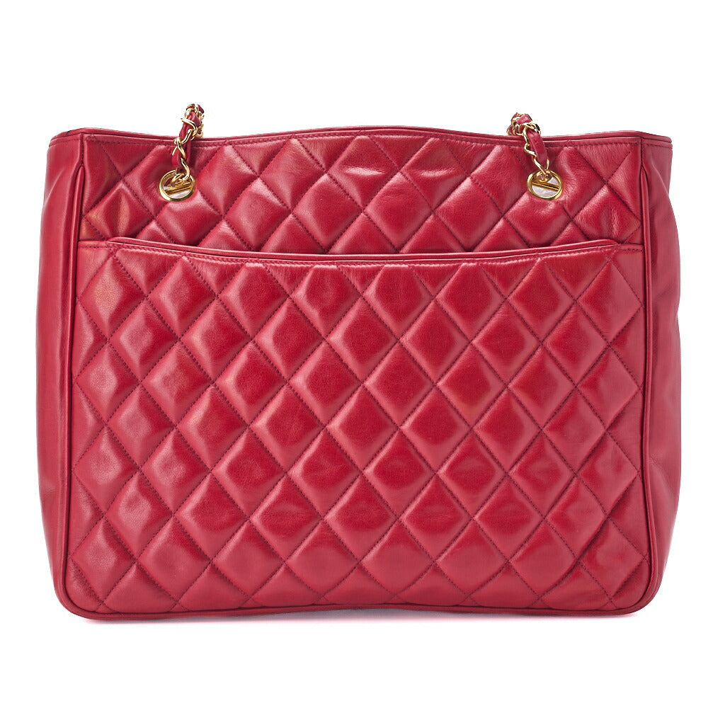 Pre-Owned Schultertasche Tote Bag Matelasse Pro Lammleder Rot Goldfarbene Hardware Pre-Owned