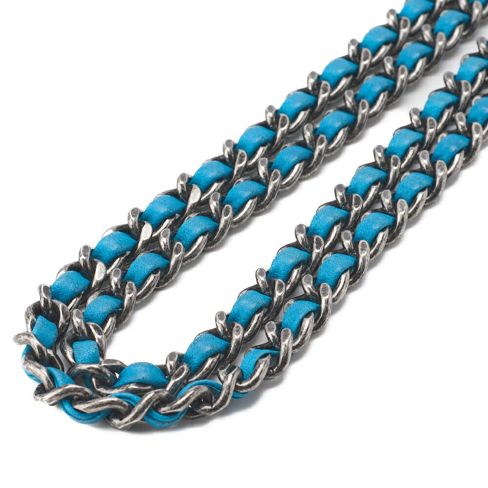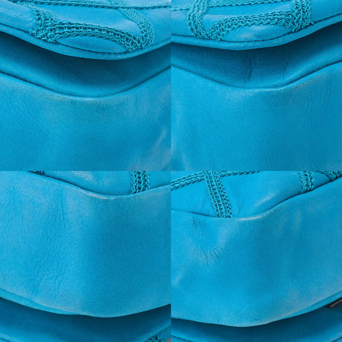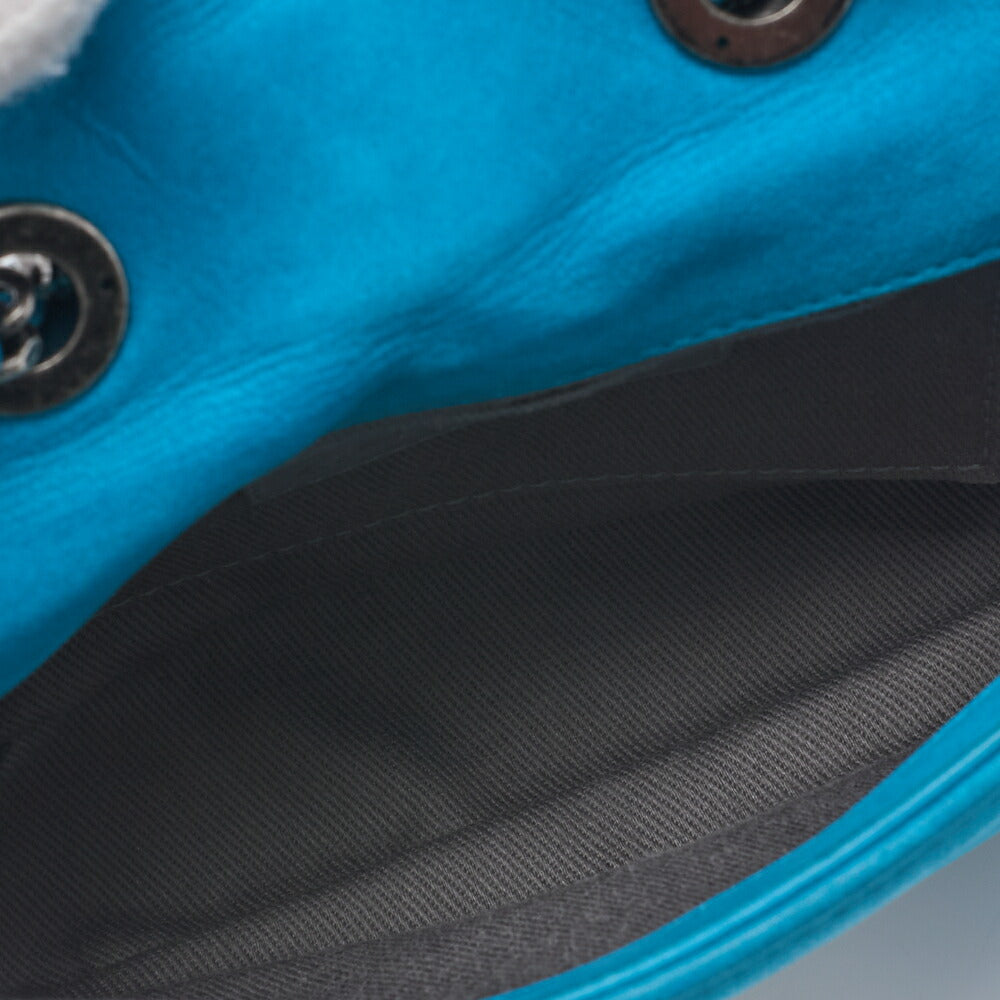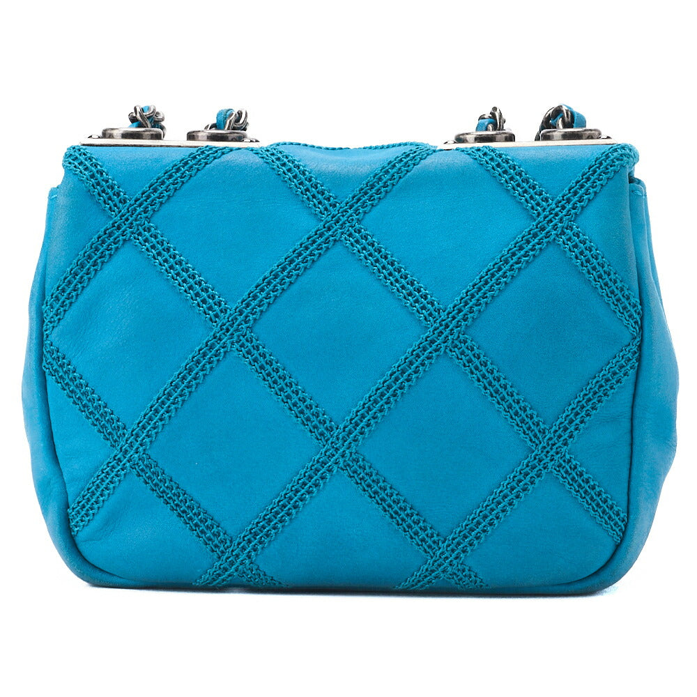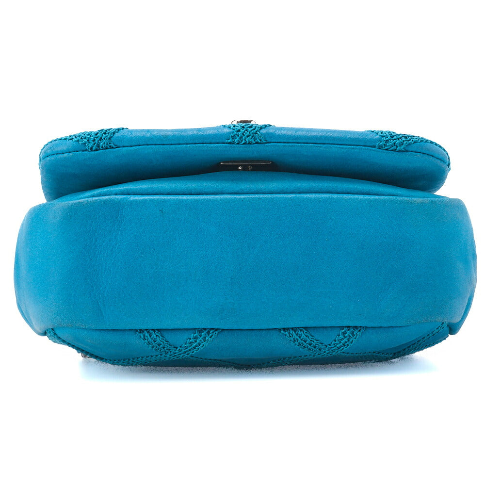 Pre-Owned Schultertasche Matelassé Glitzerleder Türkisblau Silberfarbene Hardware Pre-Owned