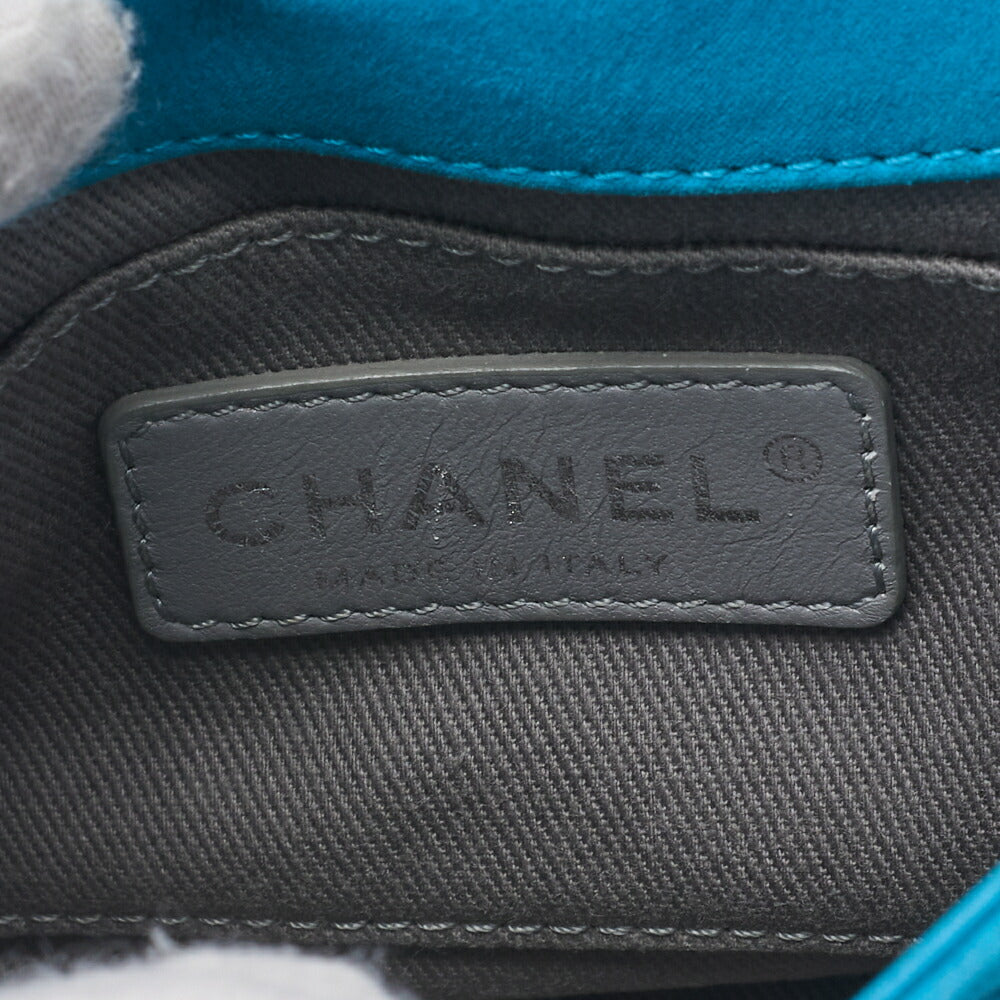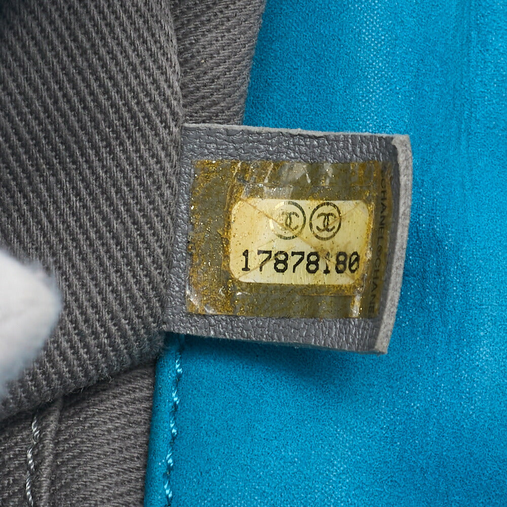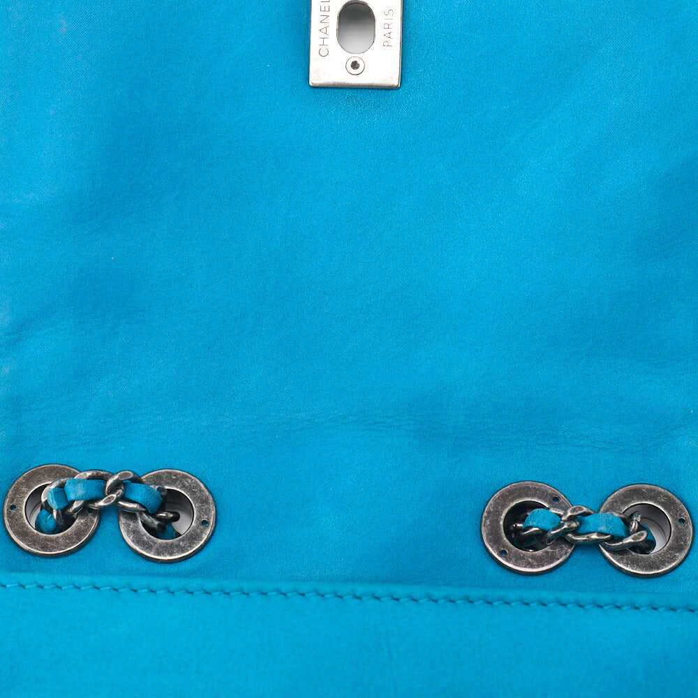 Verwöhnen Sie sich mit dem luxuriösen Charme der CHANEL Schultertasche „Tote Bag Matelassé Single Flap“ aus exquisitem Glitzerleder . Diese atemberaubende türkisblaue Tasche mit silbernen Metallbeschlägen ist nicht nur ein Accessoire, sondern ein Statement-Piece, das jedes Outfit aufwertet.