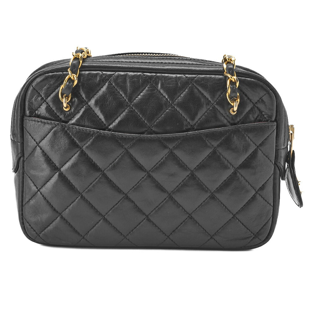 Pre-Owned Schultertasche Matelassé Lammleder Schwarz Goldfarbene Hardware Pre-Owned