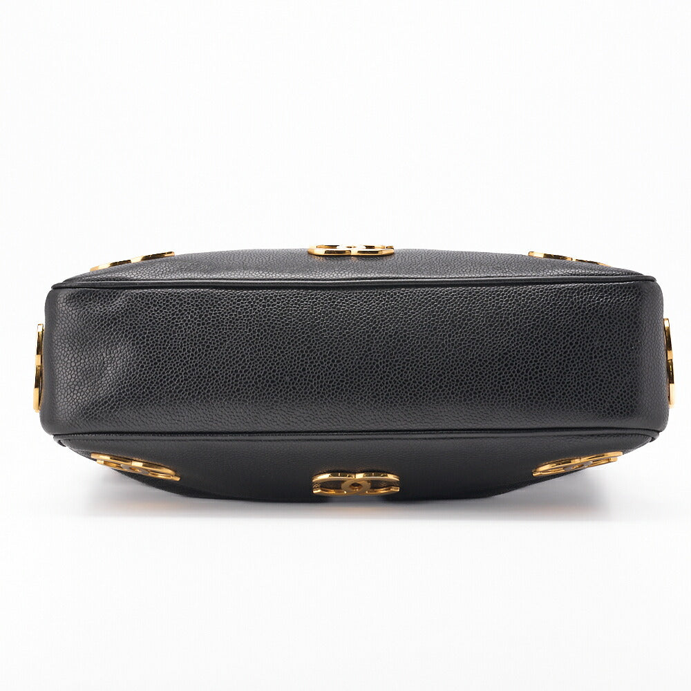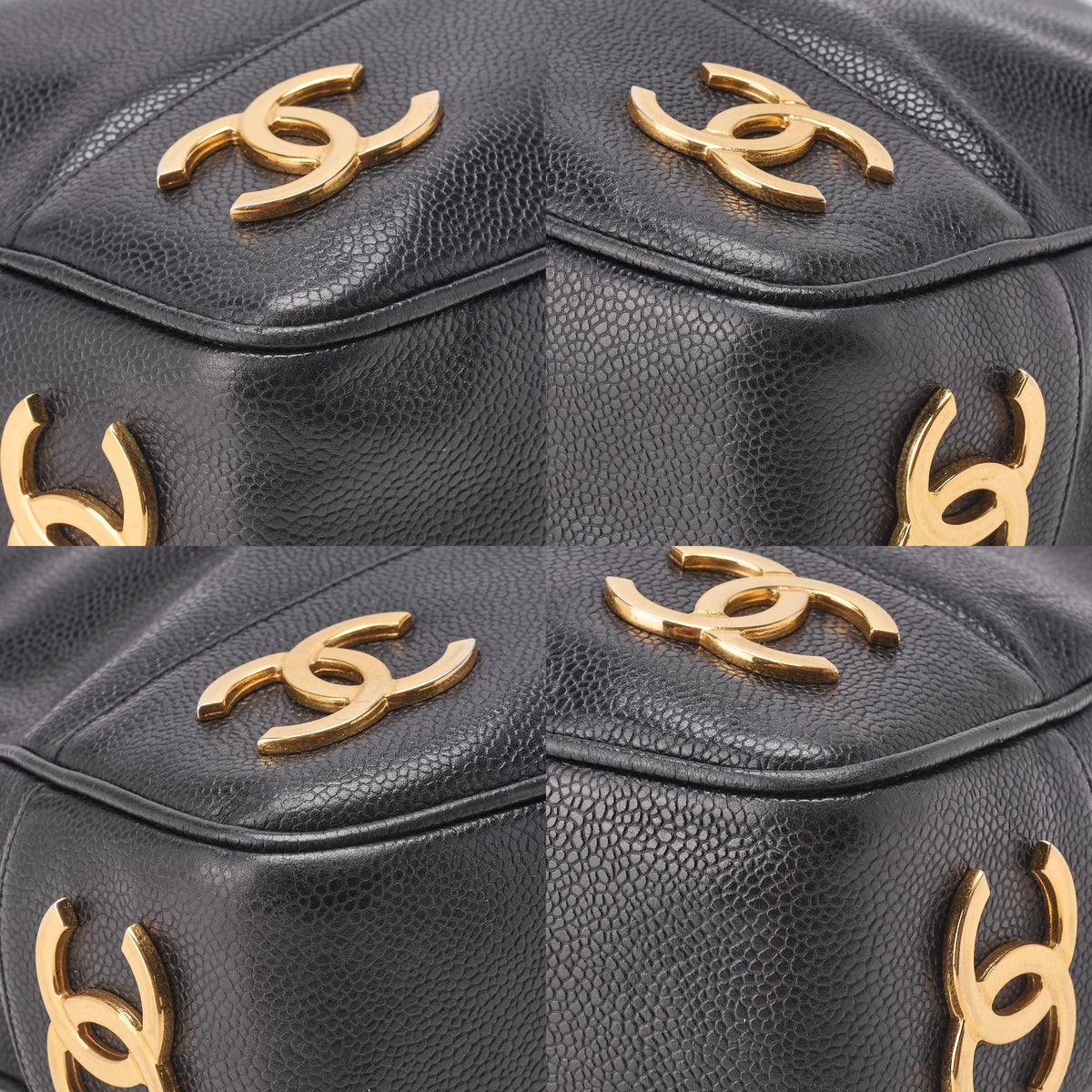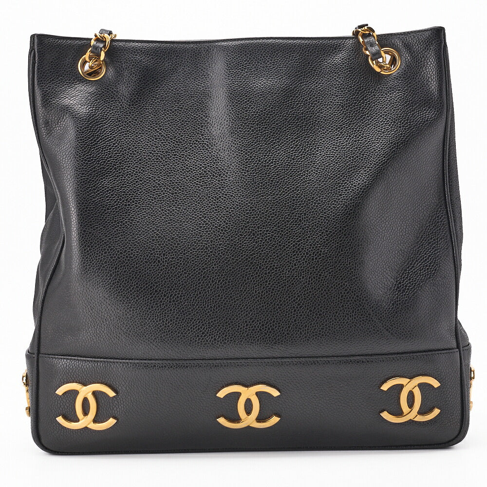 Gebrauchte Schultertasche Triple Coco Doppelkette Schulter Caviar Skin Schwarz Goldfarbene Hardware Gebraucht