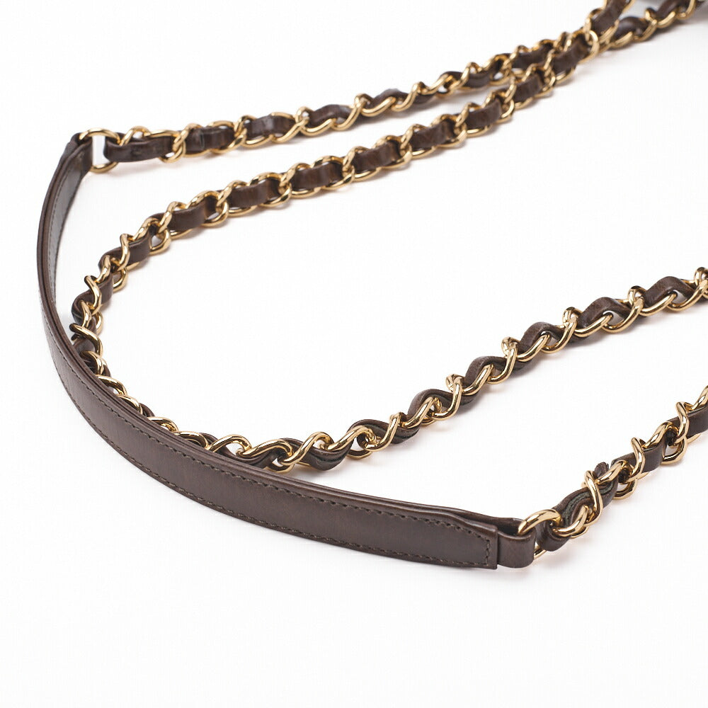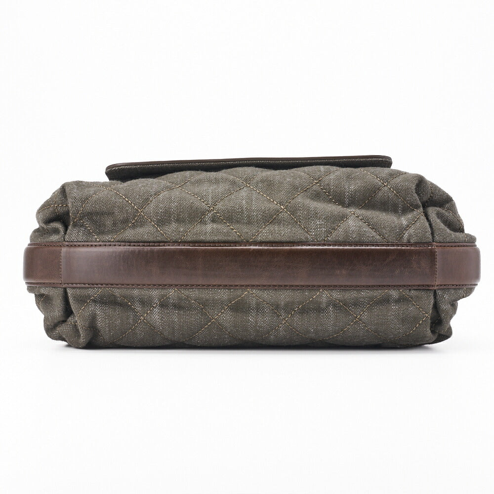 Pre-Owned Umhängetasche Vintage Kalbsleder Denim Coco Charm Kordelzug Braun Goldfarbene Hardware Pre-Owned