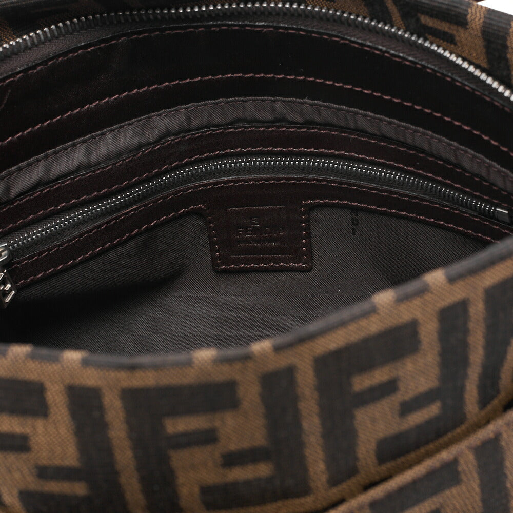 Pre-Owned Umhängetasche Zucca Canvas Leder Braun Silberfarbene Hardware Pre-Owned