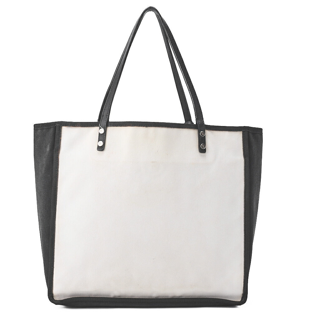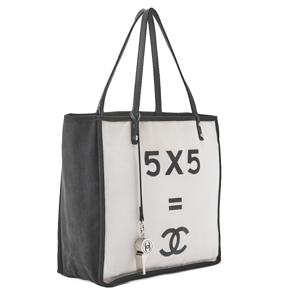 Pre-Owned Tote Bag Coco Mark Canvas with Whistle Charm White x Black Silver-Tone Hardware, Pre-Owned