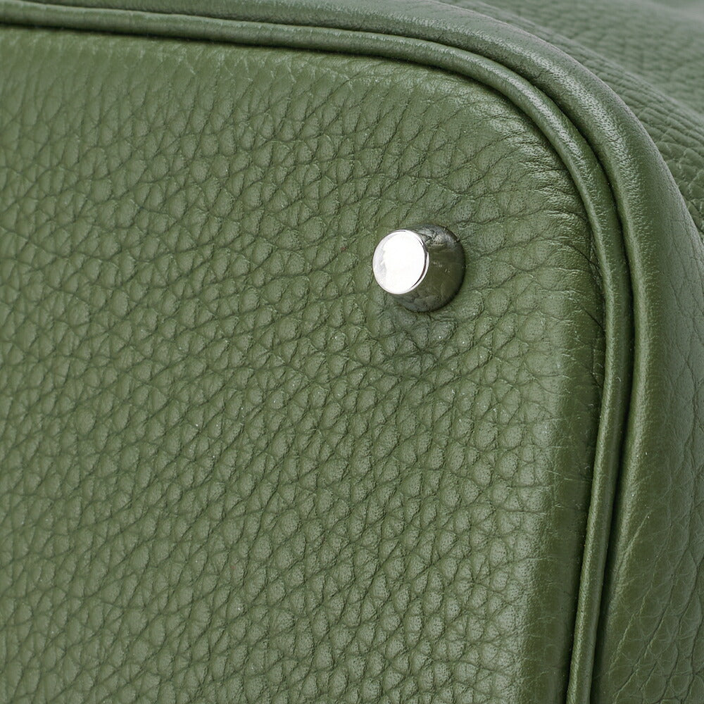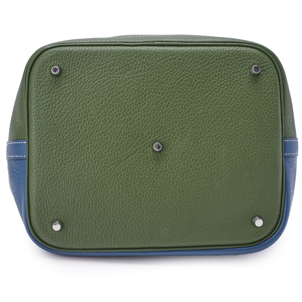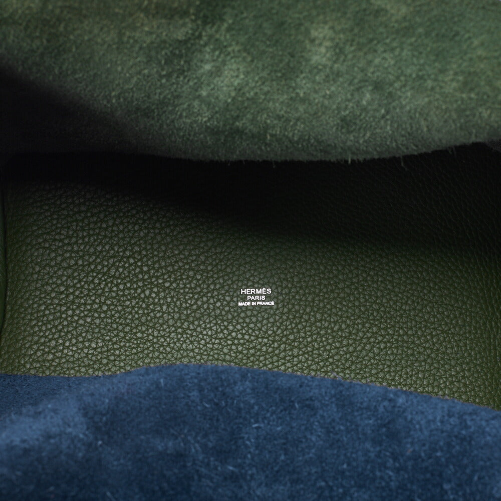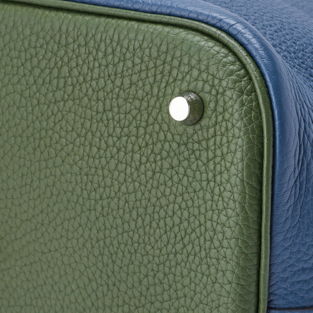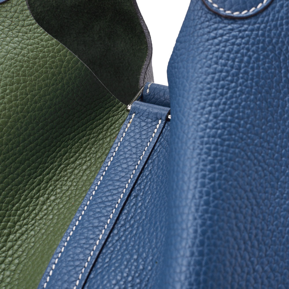 Veredeln Sie Ihren Stil mit der HERMES Hermes Tote Bag Picotan Rock GM , einem atemberaubenden Beispiel für Luxus und Funktionalität. Diese exquisite Tragetasche aus hochwertigem Tryon Clemence Leder besticht durch die faszinierende Farbe Colvert Canopee und ist mit silbernen Metallbeschlägen verziert, die jedem Outfit einen Hauch von Raffinesse verleihen.