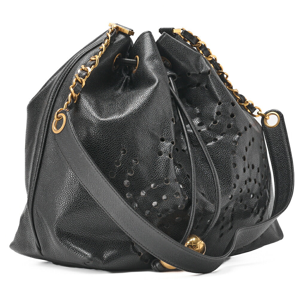 Wir präsentieren die exquisite CHANEL Triple Coco Drawstring Type Ball Charm Punching Shoulder Bag , gefertigt aus luxuriösem Caviar Skin in edlem Schwarz, verziert mit eleganten Goldbeschlägen. Diese schicke Damen-Umhängetasche ist nicht nur ein modisches Statement; sie verkörpert die zeitlose Eleganz und erstklassige Handwerkskunst, für die CHANEL bekannt ist. Mit den Maßen ca. 30 cm (B x H x T) und einer Schultergurtlänge von ca. 90 cm verbindet diese Tasche Stil und Funktionalität.