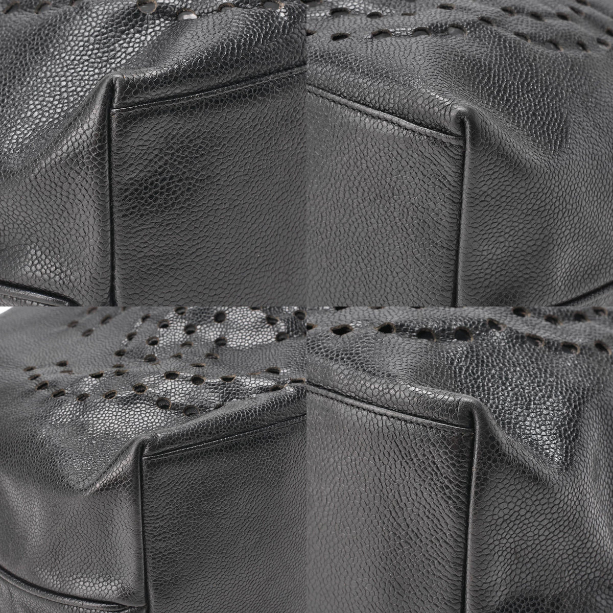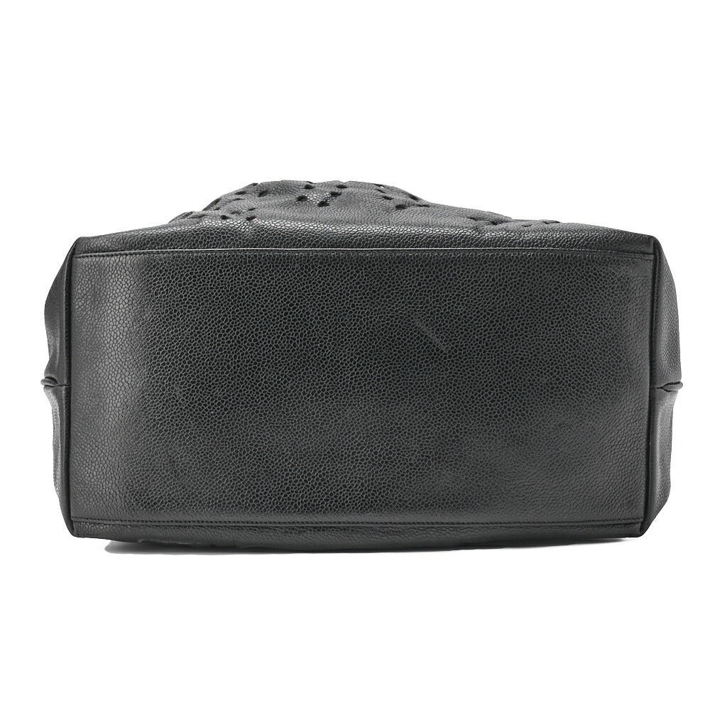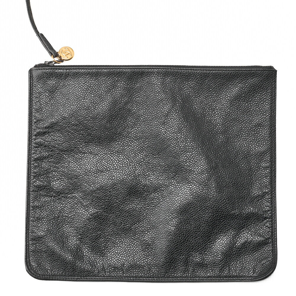 Gebrauchte Umhängetasche, Dreifacher Coco-Kordelzug, Kaviarhaut, Schwarz, Goldfarbene Metallteile, Gebraucht