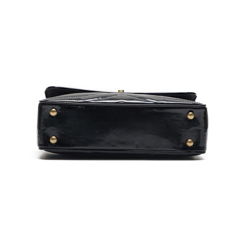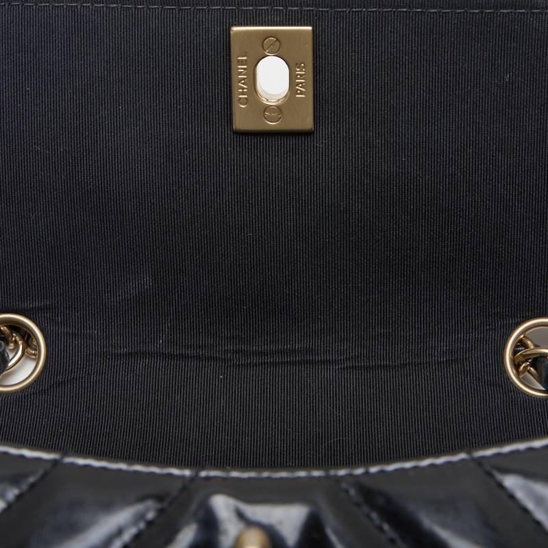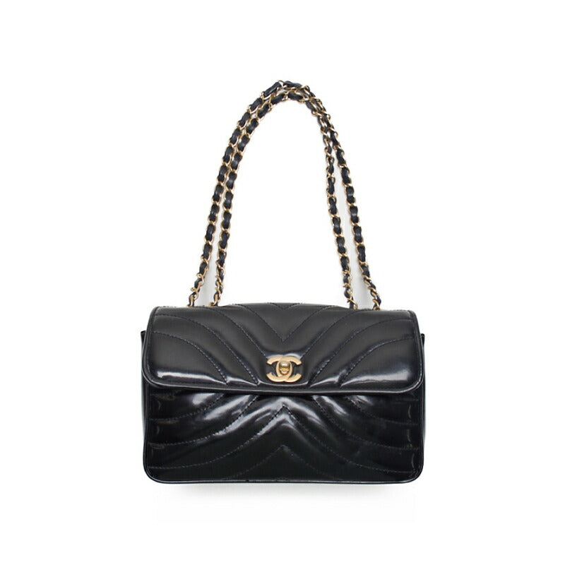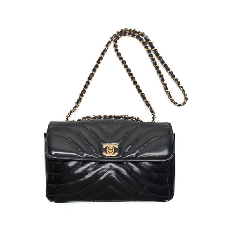 Erweitern Sie Ihre Accessoire-Auswahl mit der CHANEL V-Stitch Turn Lock Chain Schultertasche aus edlem schwarzem Emaille mit luxuriösen Goldbeschlägen. Diese exquisite Mini-Schultertasche ist ein Must-have für jede modebewusste Frau, die ein Statement setzen und gleichzeitig auf Funktionalität setzen möchte.