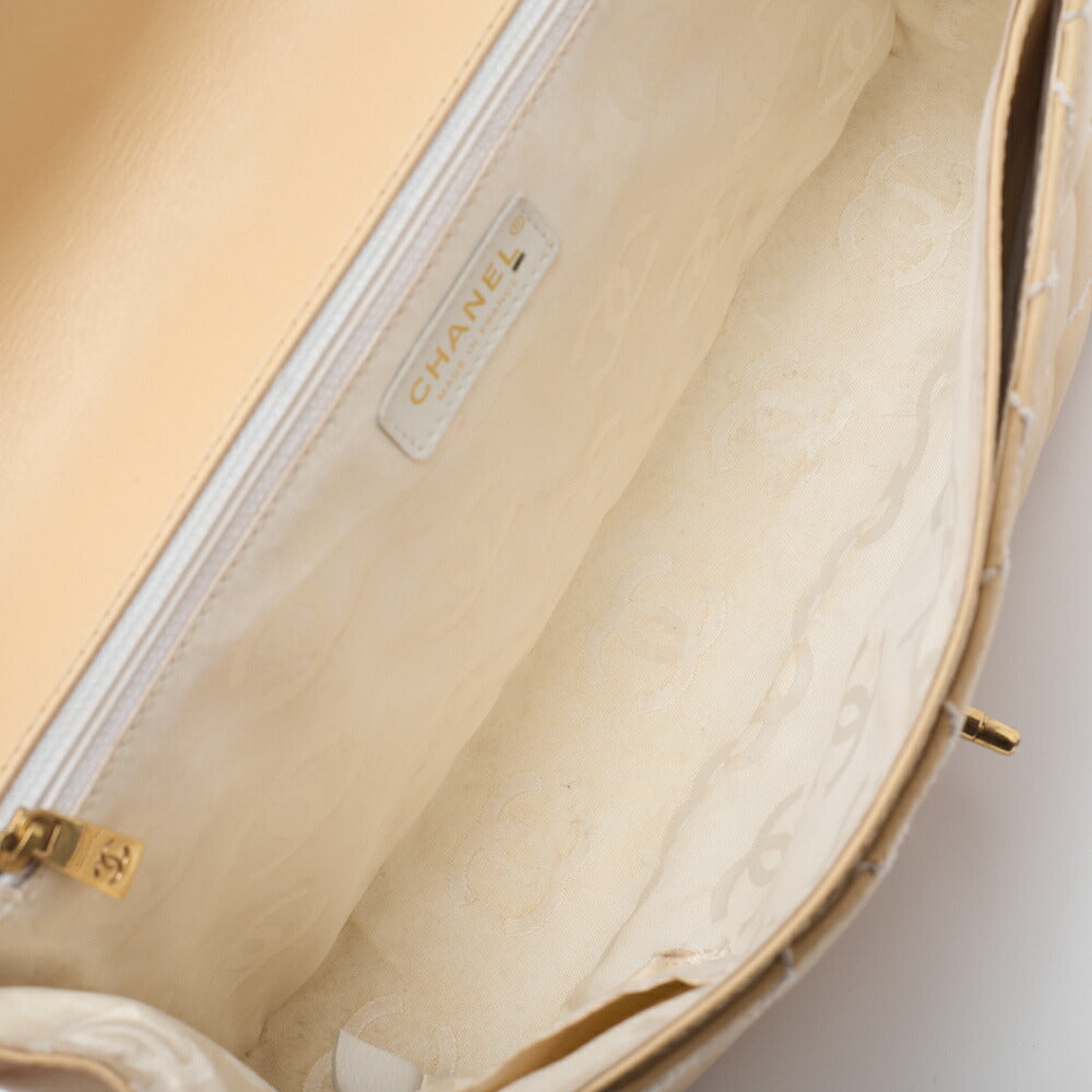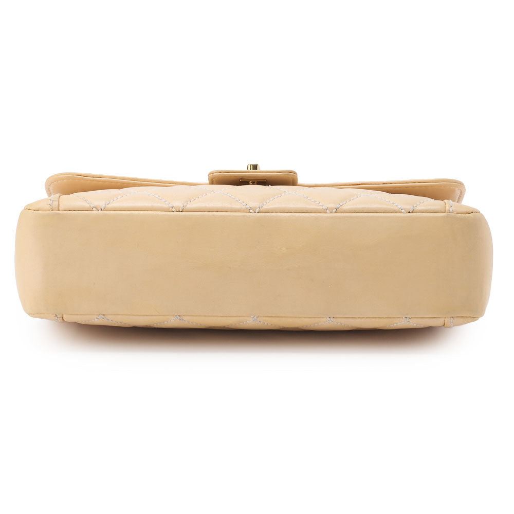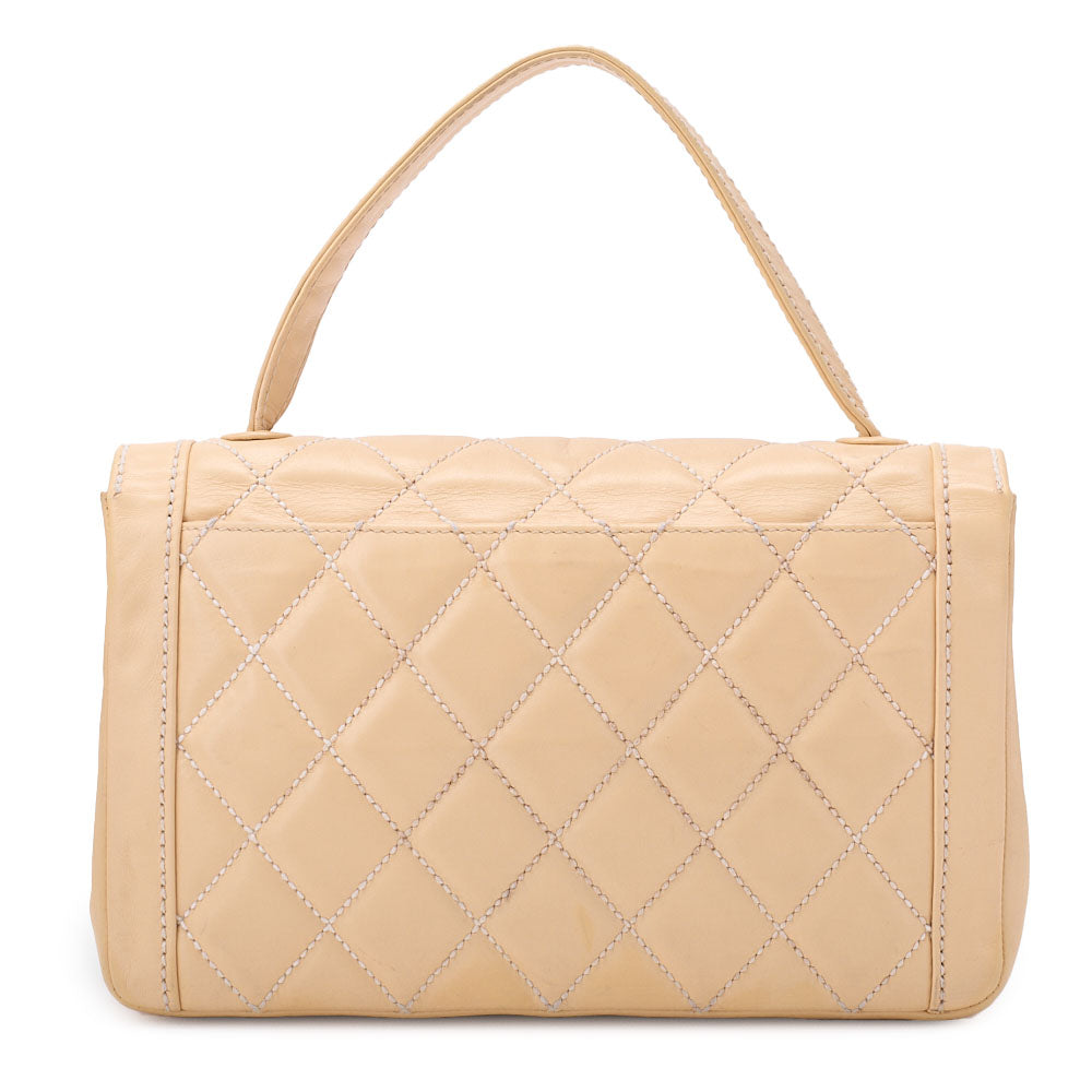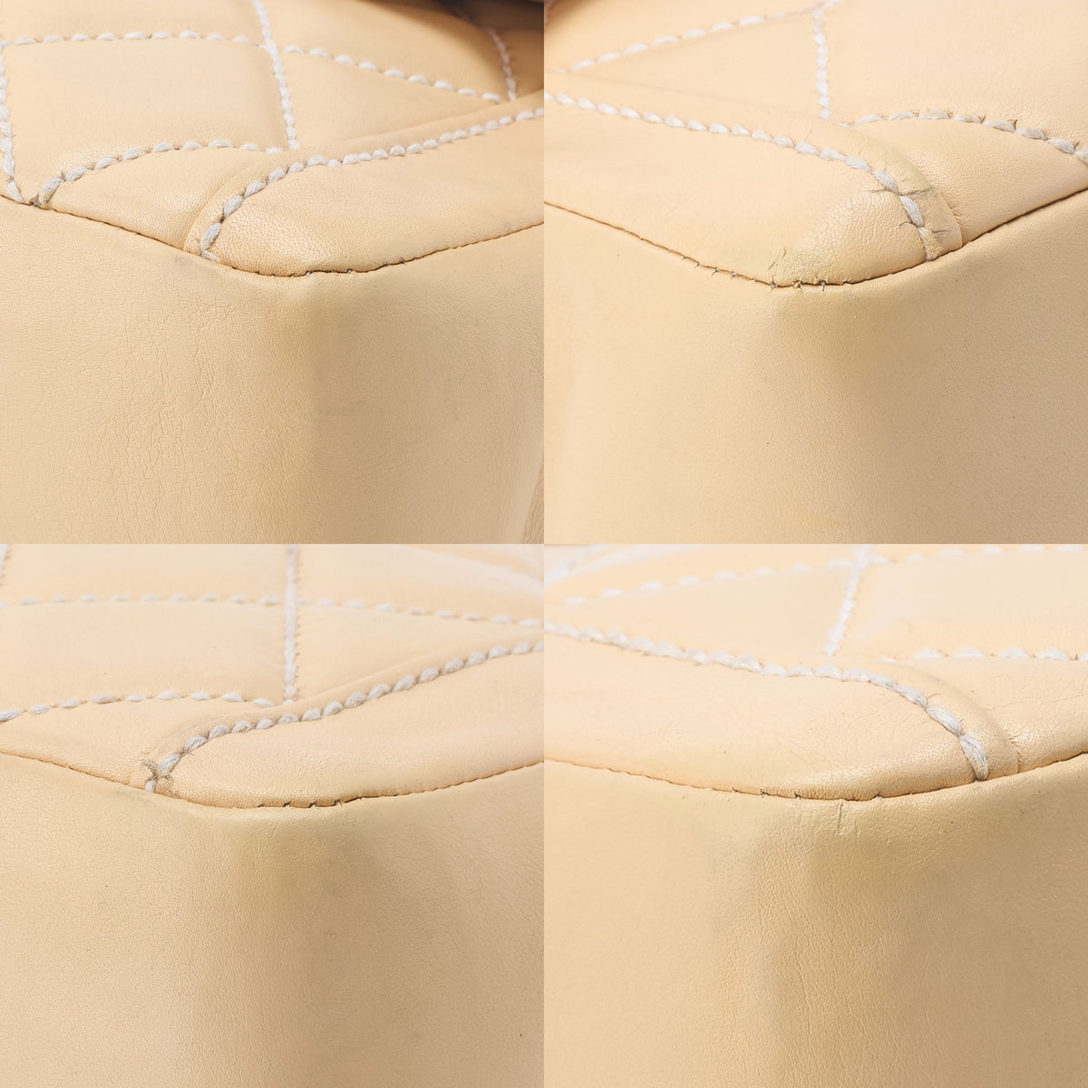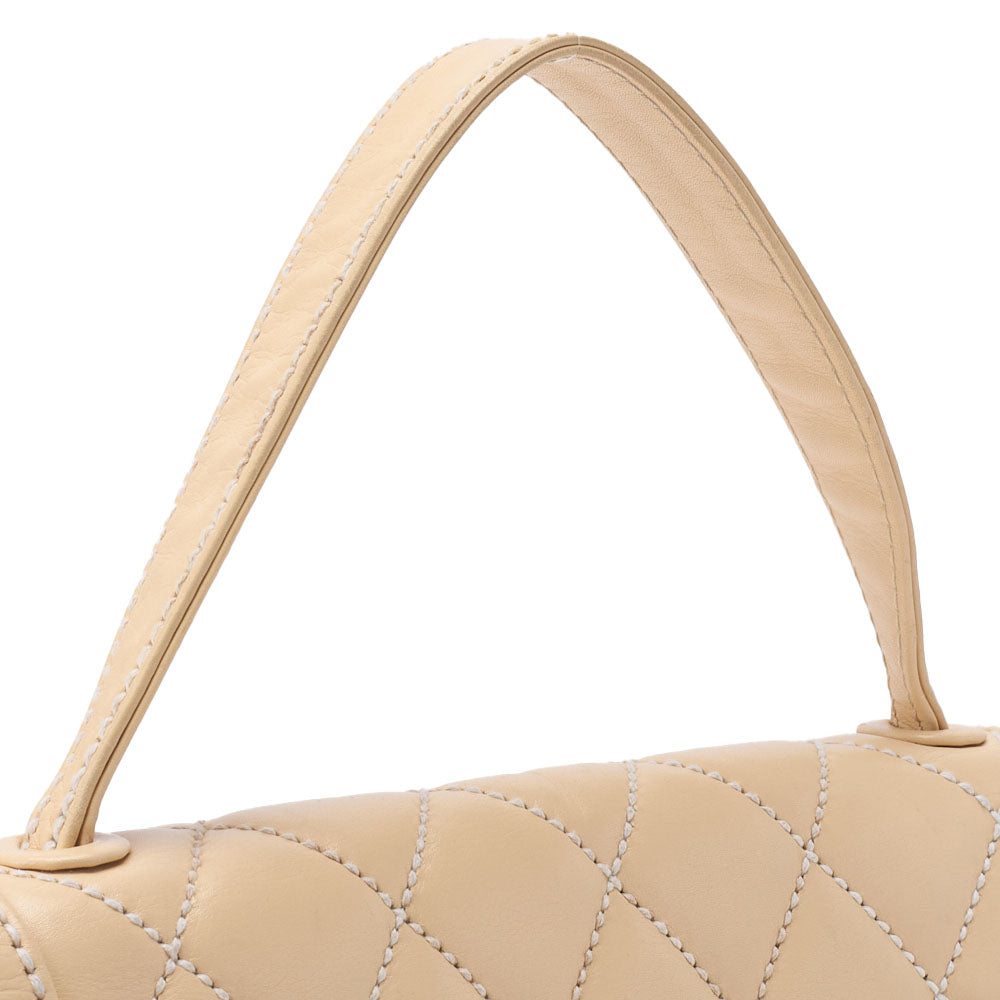 Gebrauchte Handtasche Wild Stitch Matelassé Kalbsleder Beige Goldfarbene Hardware Gebraucht