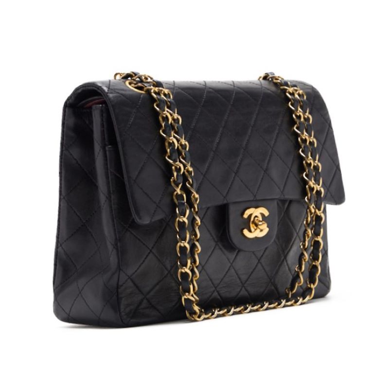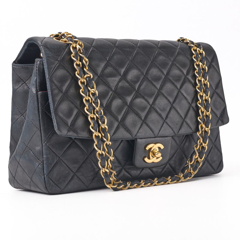 Pre-Owned Umhängetasche Matelassé Doppelklappe Kette Schulter Lammleder Schwarz Goldfarbene Hardware Pre-Owned