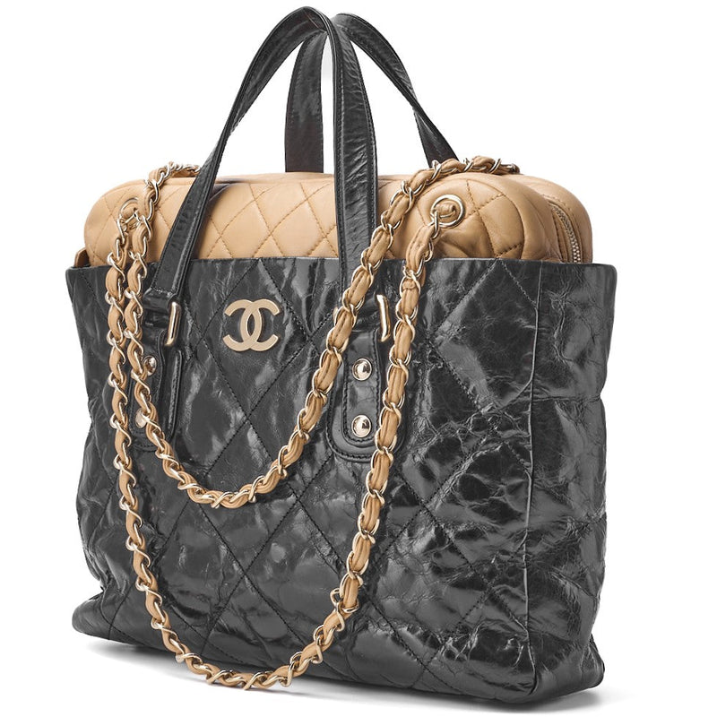 Pre-Owned Tote Bag Matelasse 2WAY Chain Shoulder Lammleder Schwarz Goldfarbene Hardware Pre-Owned
