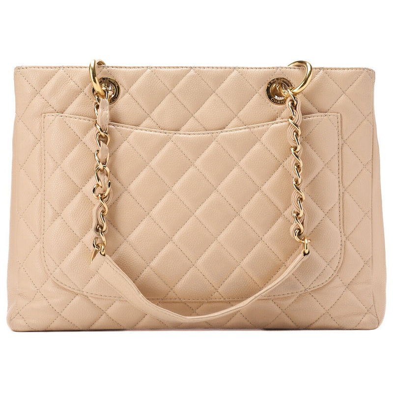 Gebrauchte Tragetasche Choco Bar Top Logo Caviar Skin Beige Silberfarbene Hardware Gebraucht