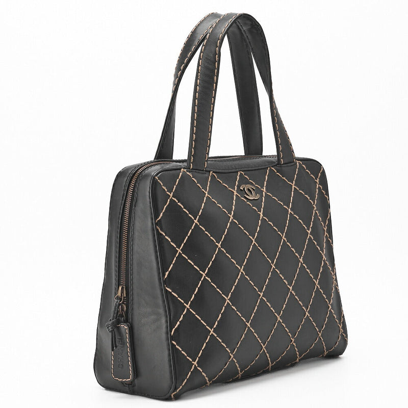 Gebrauchte Tragetasche, Coco Mark Wild Stitch, Kalbsleder, Schwarz, silberfarbene Metallteile, gebraucht