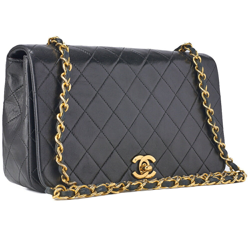 Pre-Owned Schultertasche Matelassé Lammleder Schwarz Goldfarbene Hardware Pre-Owned