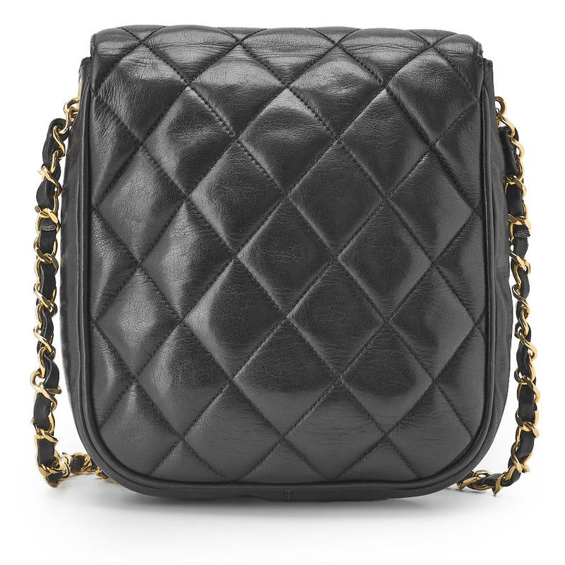 Gebrauchte Umhängetasche, Matelassé-Vertikal-Straight-Flap, Lammleder, Schwarz, Goldfarbene Metallteile, Gebraucht