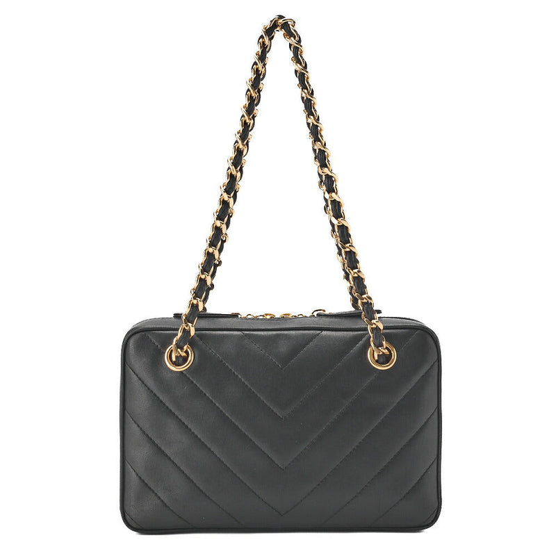 Pre-Owned Chain Handtasche V-Stitch Kalbsleder Schwarz Goldfarbene Hardware Pre-Owned