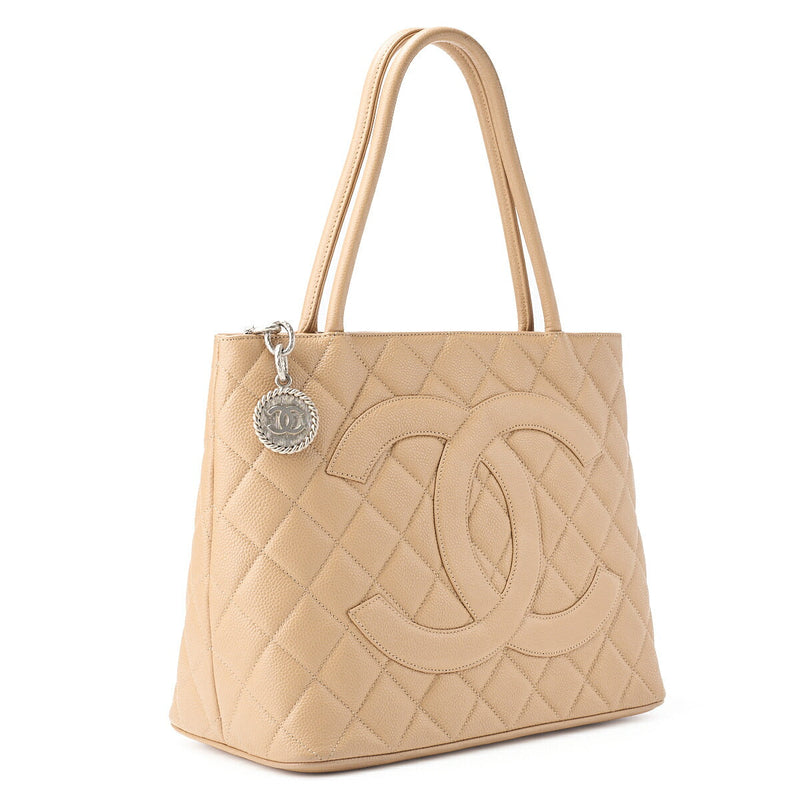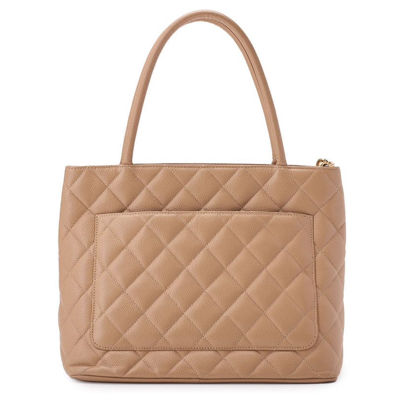 Pre-Owned Tote Bag Matelassé Reprint Caviar Skin Beige Goldfarbene Hardware Pre-Owned