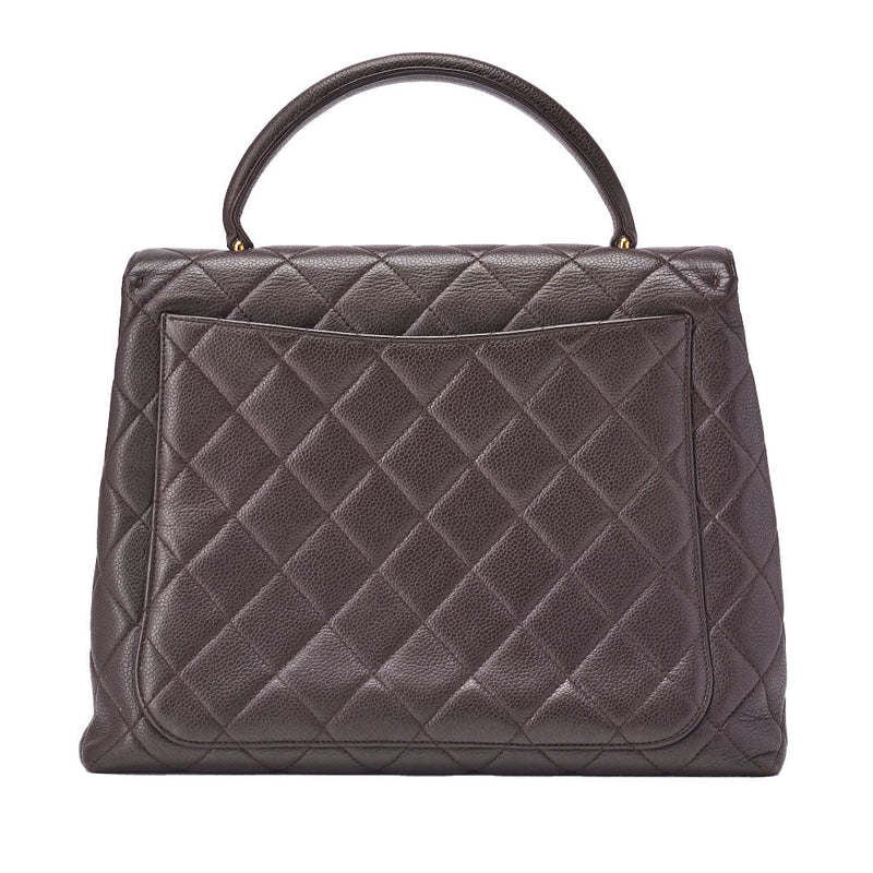 Gebrauchte Handtasche, Matelassé-Drehverschluss, Kaviarhaut, Braun, Goldfarbene Metallteile, Gebraucht