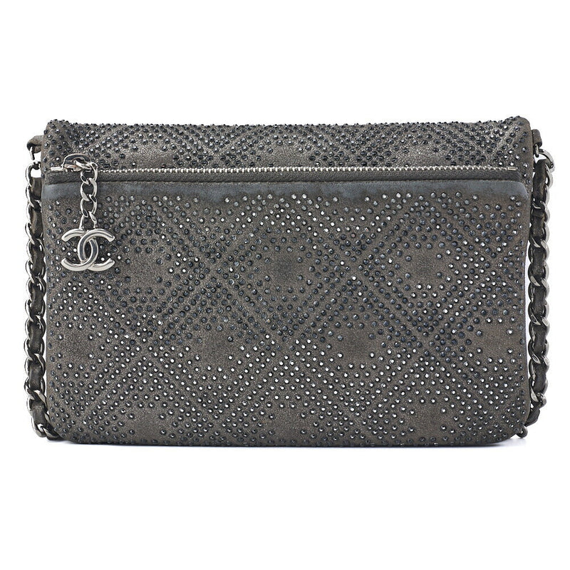 Pre-Owned Chain Shoulder Bag Mini Matelassé Stone Leder Grau Silberfarbene Hardware Pre-Owned