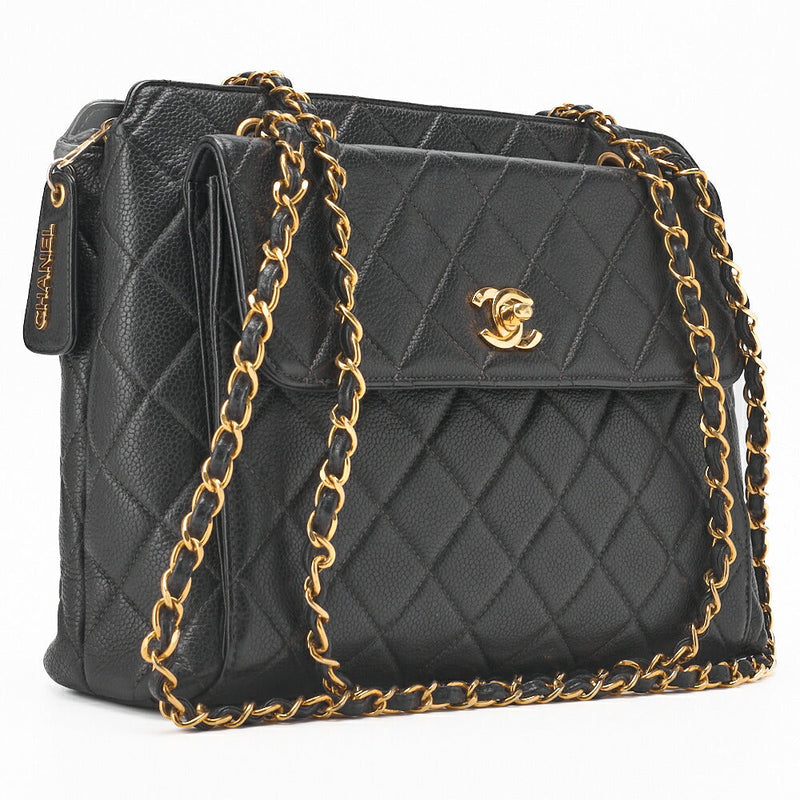 Pre-Owned Schultertasche Matelassé Caviar Skin Schwarz Goldfarbene Hardware Pre-Owned