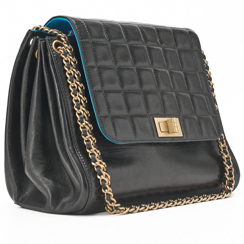 Pre-Owned Schultertasche, Chocolate Bar 2.55 Rock Chain, Lammleder, Schwarz-Blau, Goldfarbene Hardware, Pre-Owned