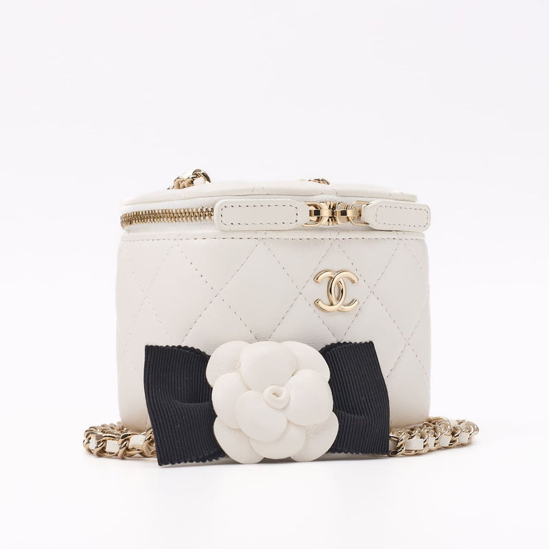 Pre-Owned Schultertasche Matelassé Camellia Kette Schulter Lammleder Weiß Gold-Ton Hardware Pre-Owned