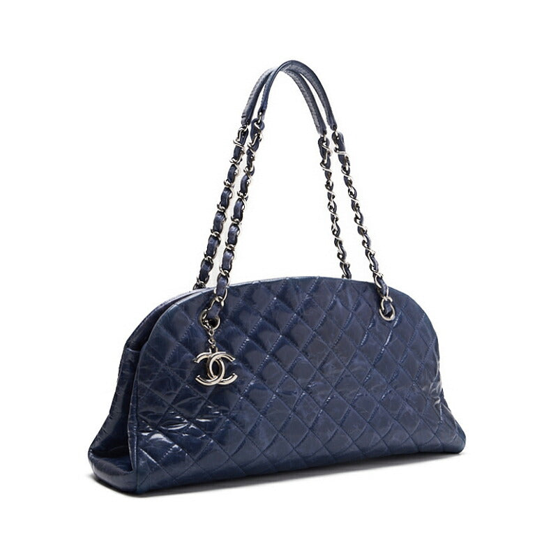Gebrauchte Umhängetasche Matelasse Gamaguchi Coco Charm Chain Shoulder Vintage Calf Blue Silver-Tone Hardware Pre-Owned