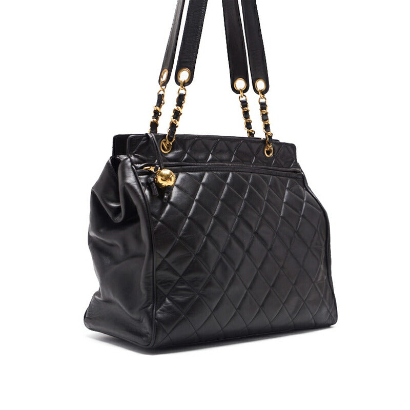 Pre-Owned Schultertasche Matelassé mit Kugelanhänger Doppelkette Lammleder Schwarz Goldfarbene Hardware Pre-Owned