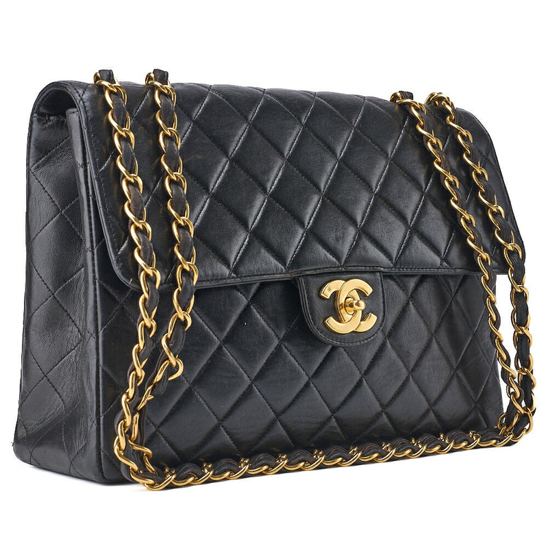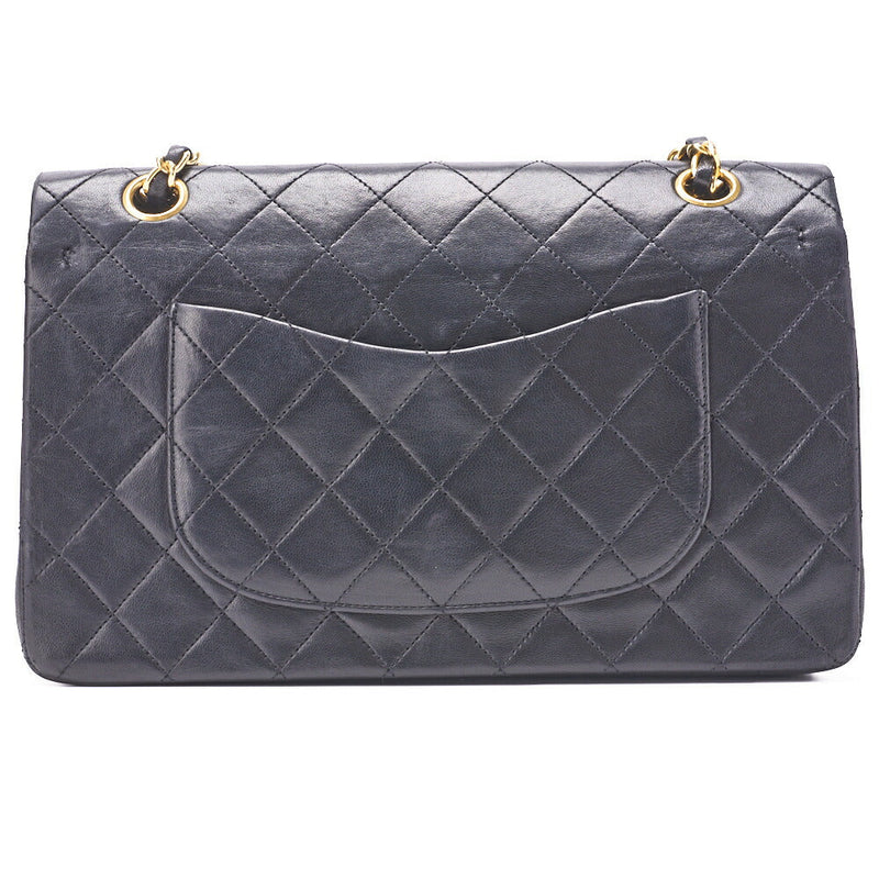 Pre-Owned Schultertasche Matelassé Doppelklappe Lammleder Schwarz Goldfarbene Hardware Pre-Owned