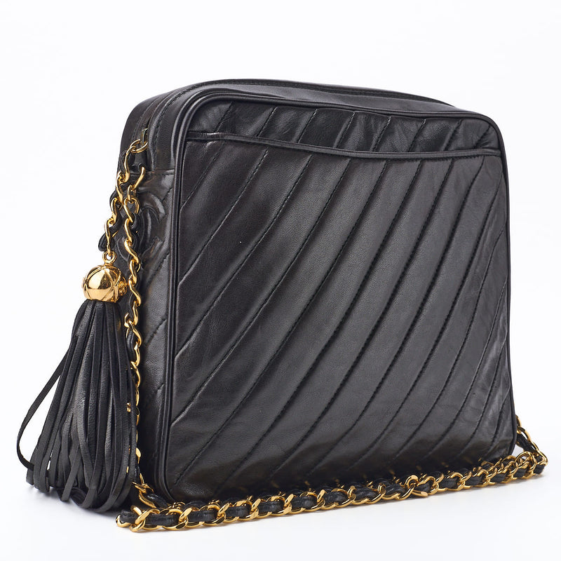 Gebrauchte Umhängetasche, Deca Matelassé, Coco V Flap, Lammleder, Schwarz, Goldfarbene Metallteile, Gebraucht