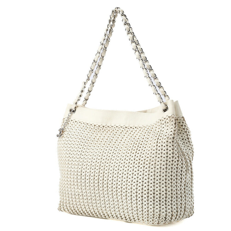 Pre-Owned Schultertasche mit geflochtener Kette, Leder, Elfenbein, silberfarbene Metallteile, Pre-Owned