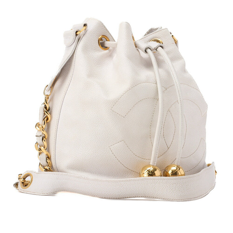 Gebrauchte Umhängetasche, Kettenschulter, Kaviarleder, Weiß, Goldfarbene Hardware, Gebraucht